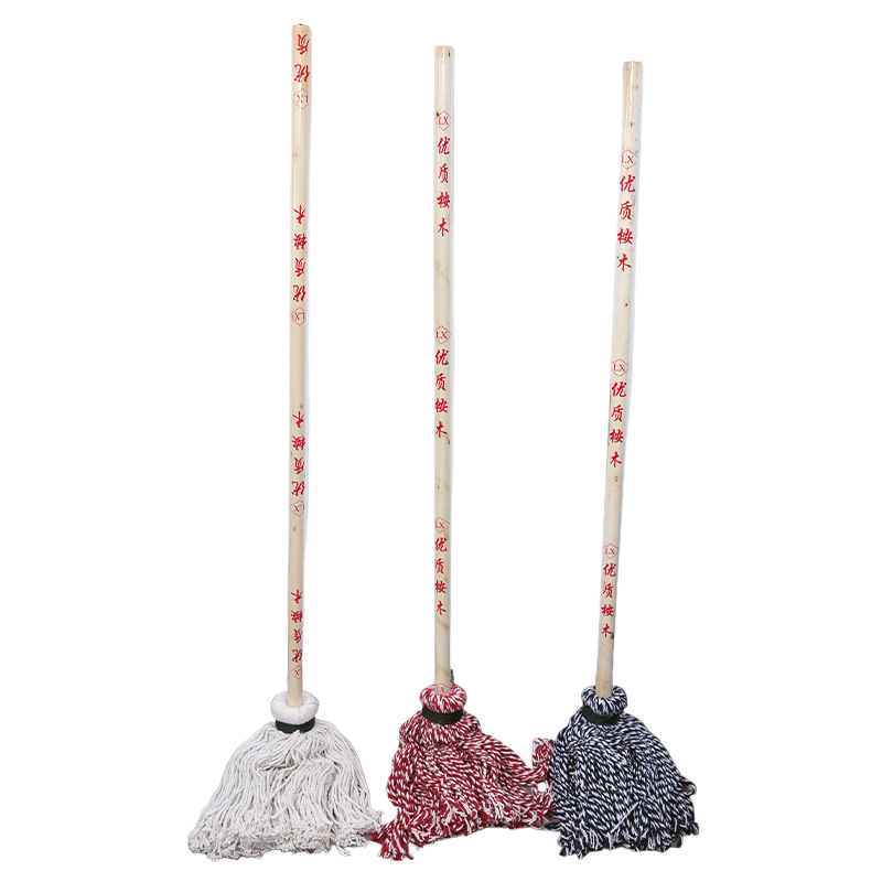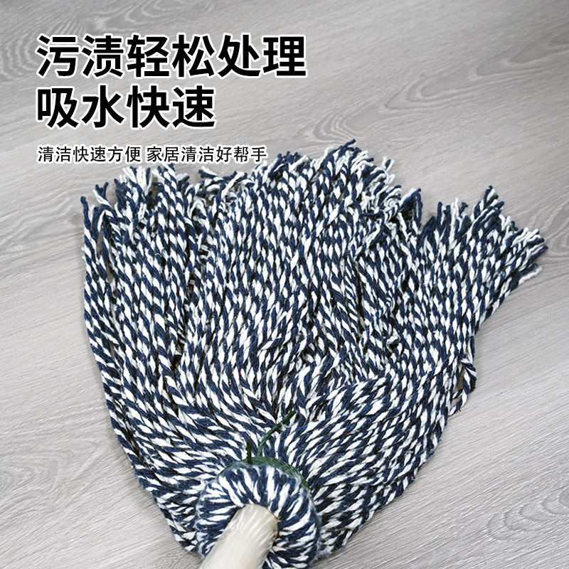 老式棉线拖把耐脏优质桉木加长加固木杆拖布家用保洁吸水棉线拖把