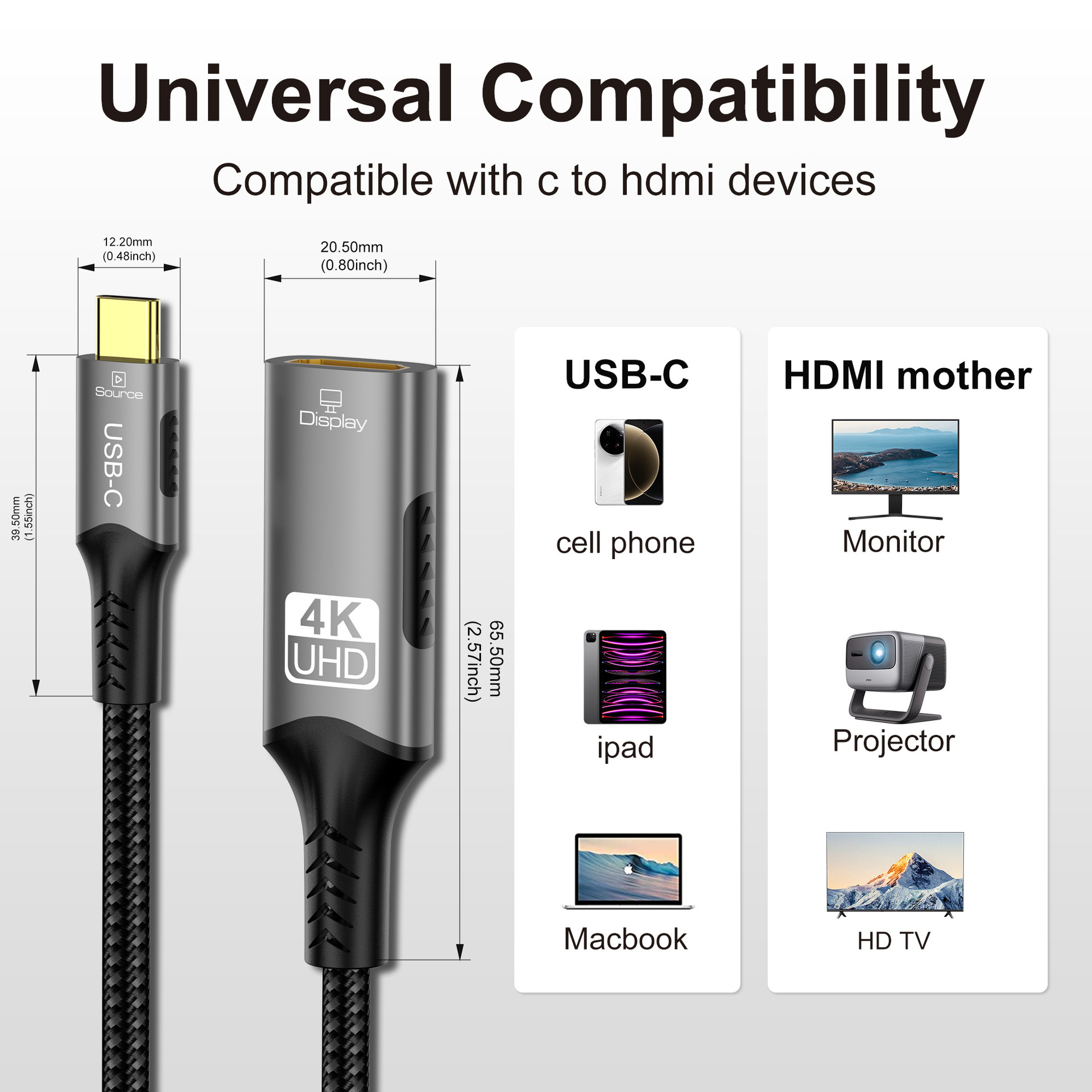 | 颜色 | 4kType-c转HDMI3m | 颜色 | 4K Type-c转HDMI母 0.25m |