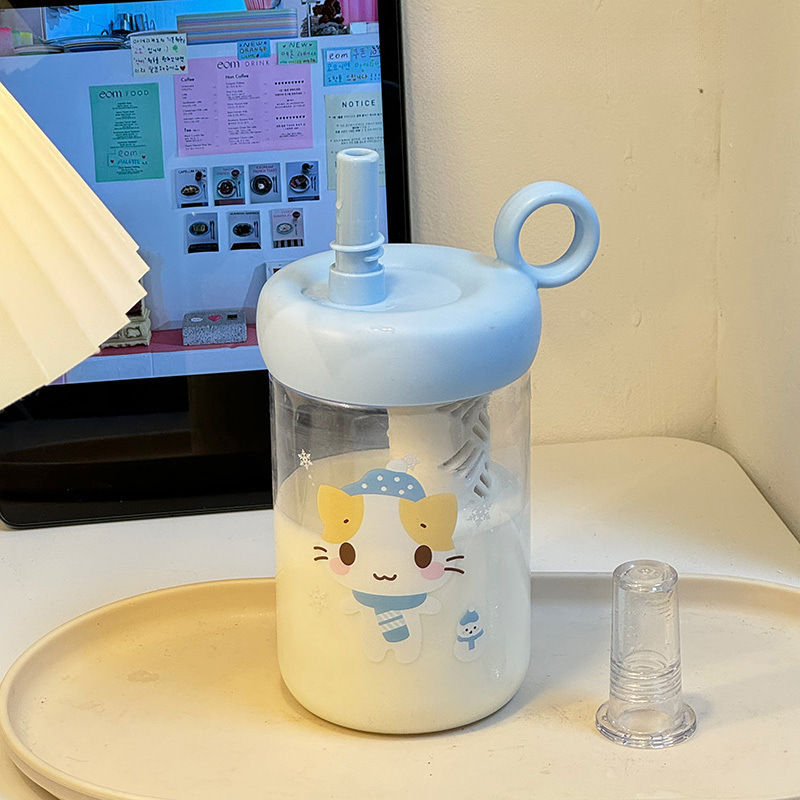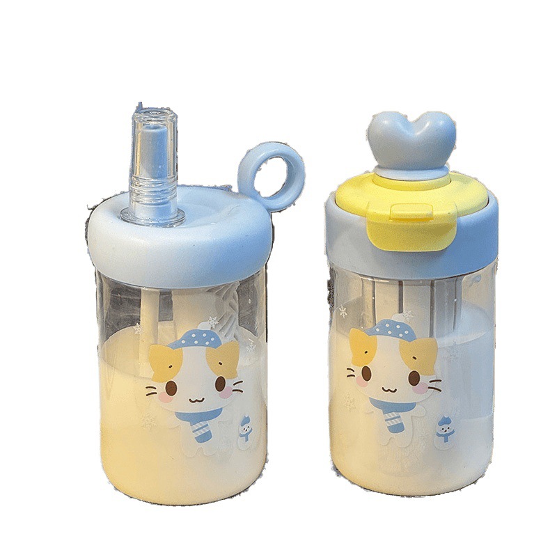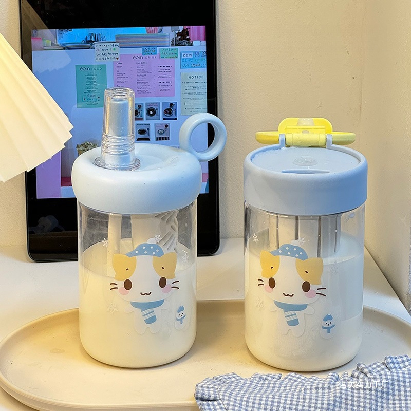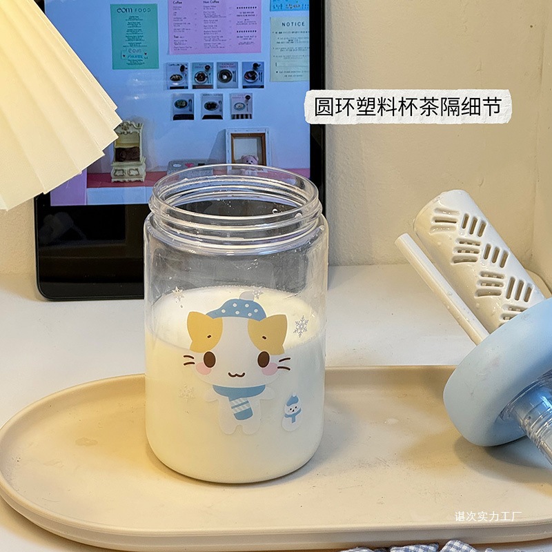 女生夏天高颜值可爱棉花猫塑料杯子带吸管学生上学便携随行杯