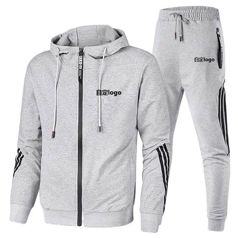 外贸春秋新款男士休闲套装连帽卫衣运动服两件套休闲套装自定logo