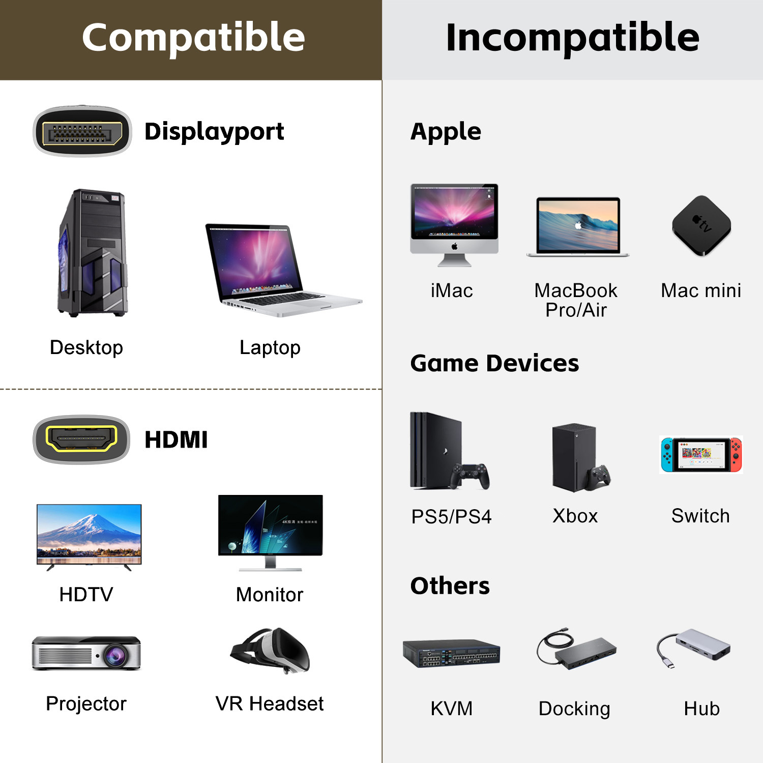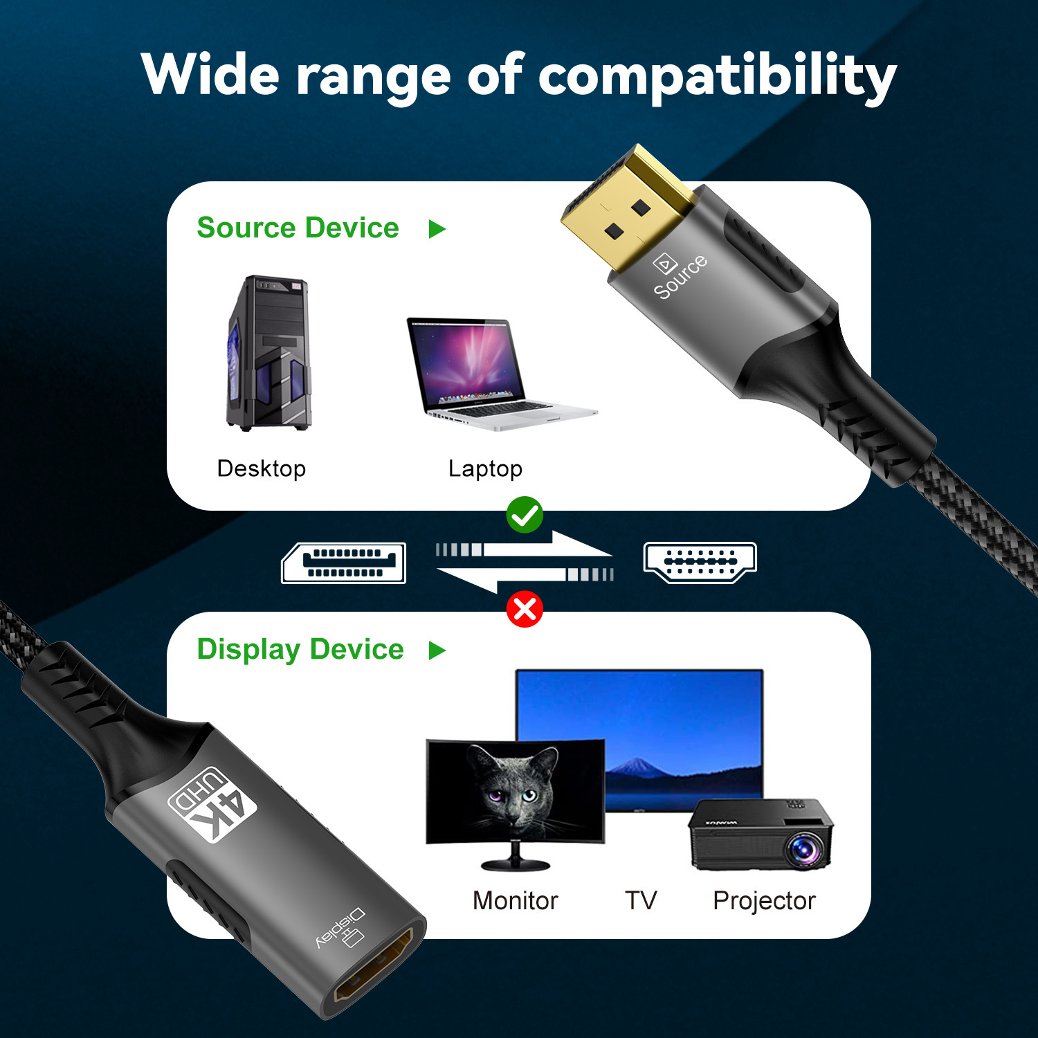 4KDP公转HDMI母单向转换线,DisplayPort转高清4K60高速传输