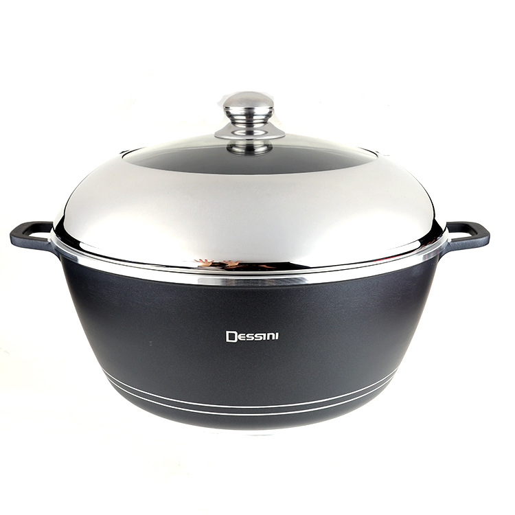 普通款汤锅单品40CM压铸铝不粘锅可配玻璃盖不锈钢组合盖4套装