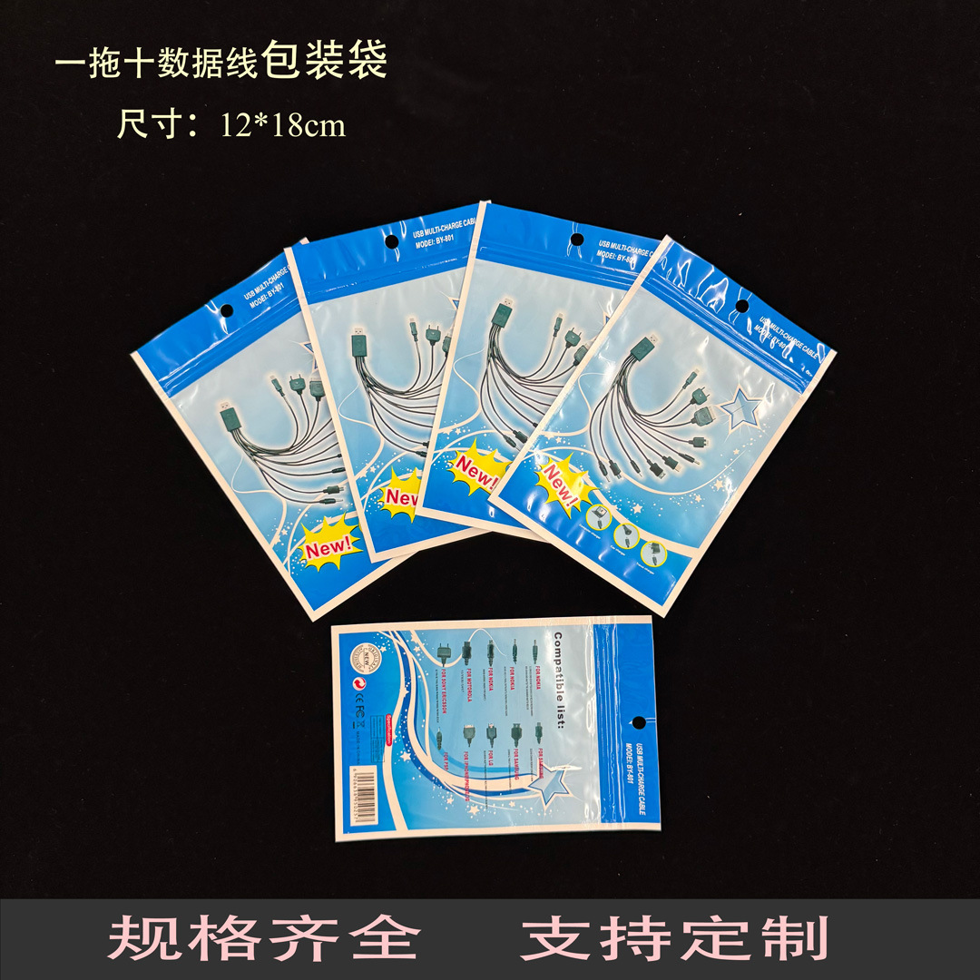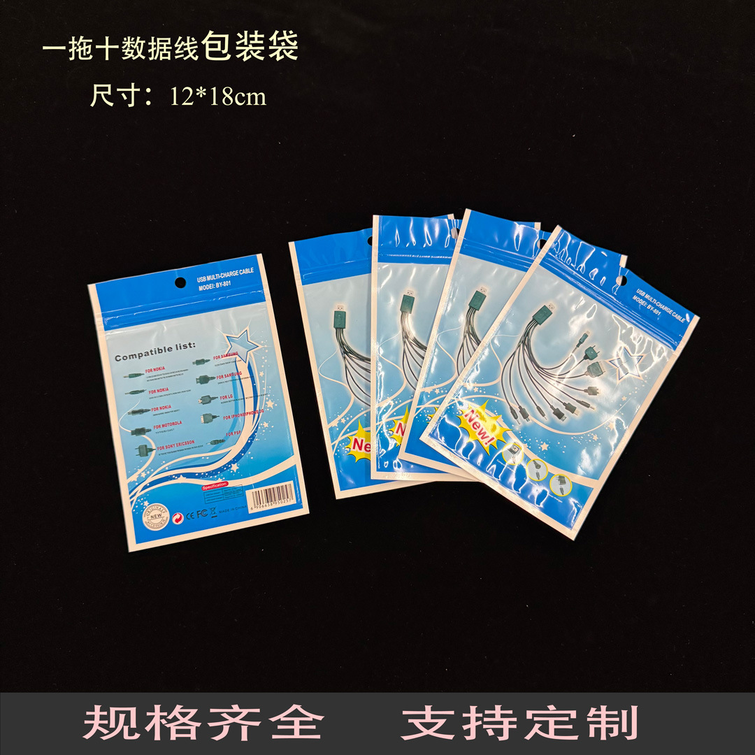 一拖十充电数据线跨境包装袋十合一多功能户外应急万能USB线袋子