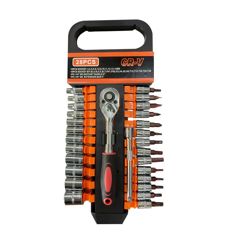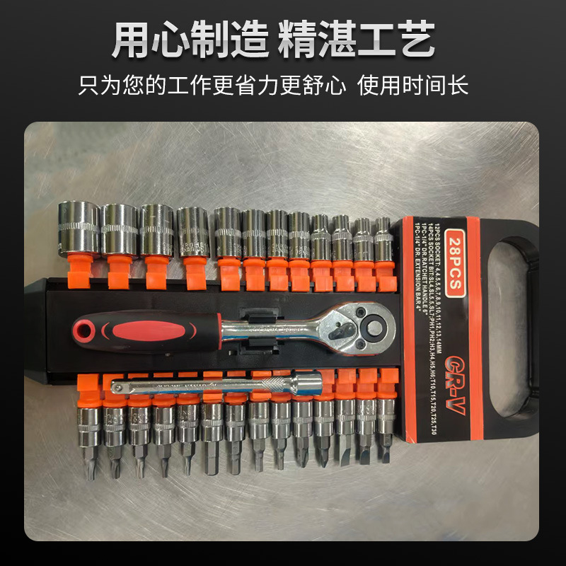 大中小飞单双排12件套六角四分之一28PC汽修工具快速棘轮扳手装