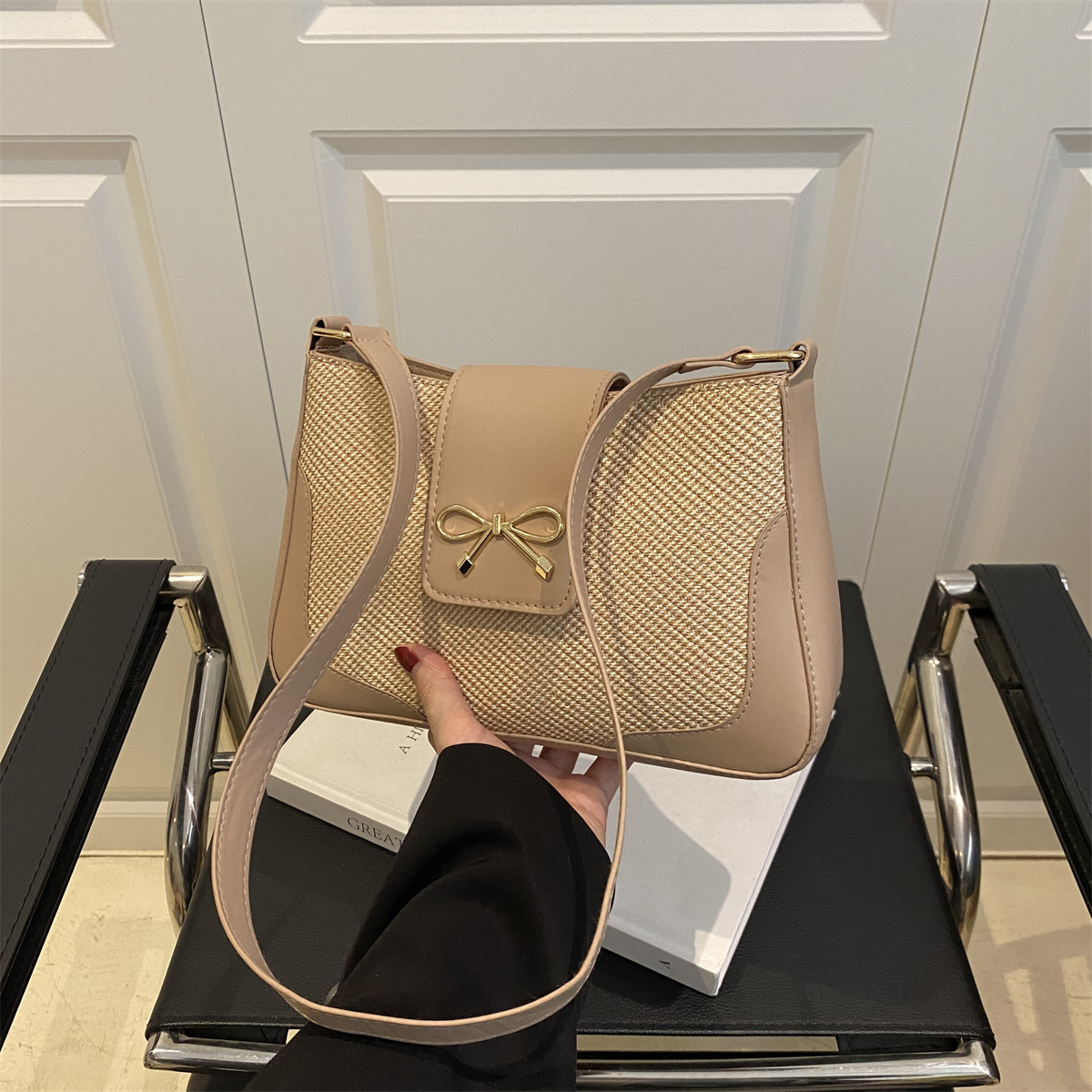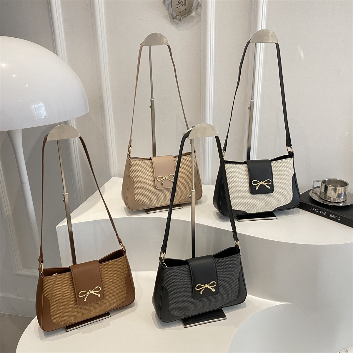 休闲百搭斜挎包复古上班通勤小包包女外贸新款潮时尚蝴蝶结腋下包