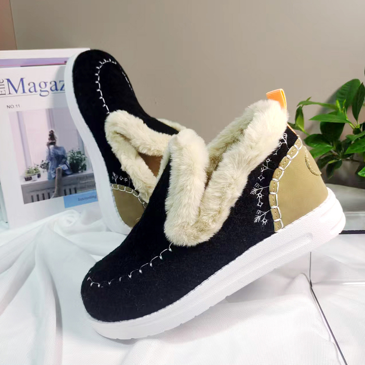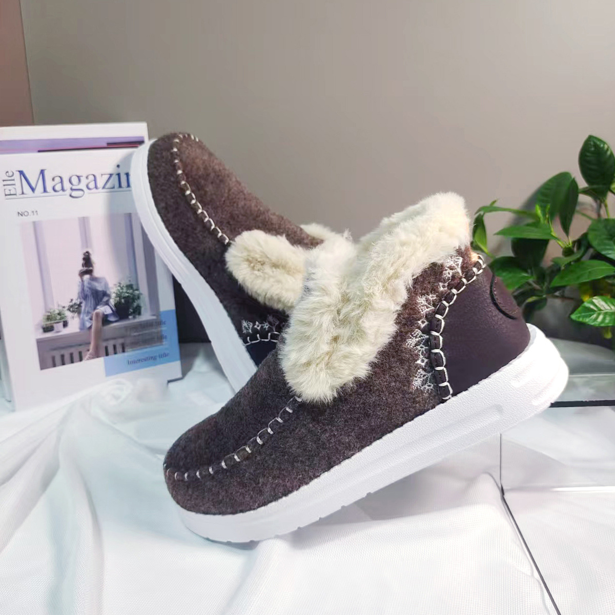 2025新款冬季外贸女士棉鞋跨境大码加绒加厚毛边保暖平底棉鞋批发