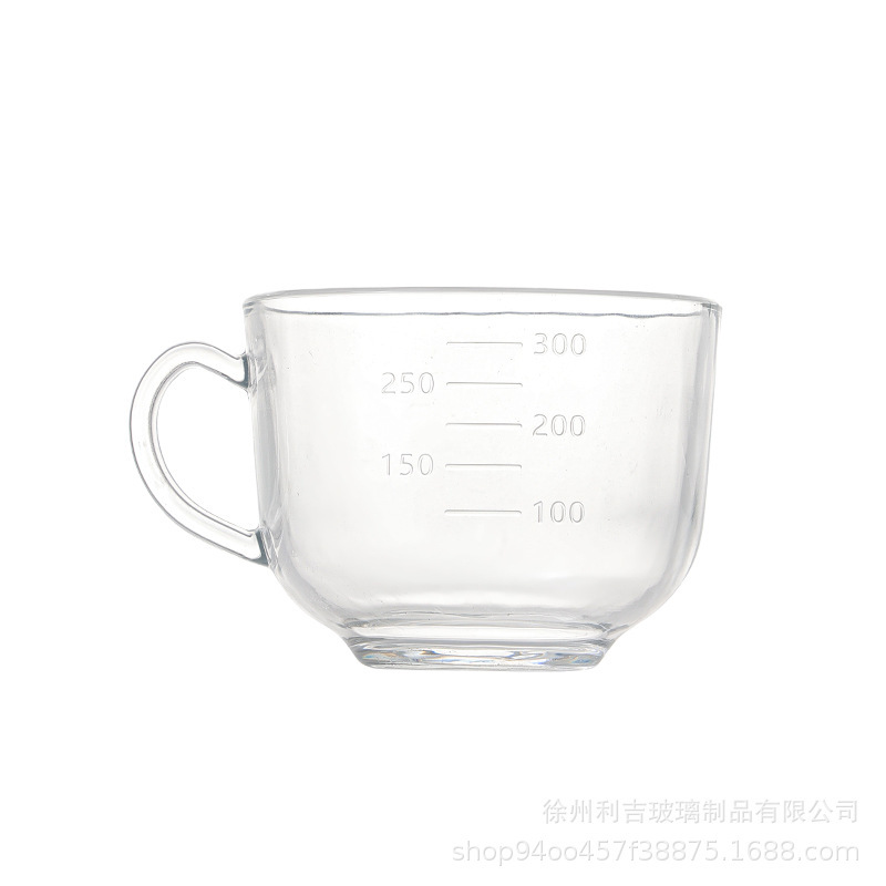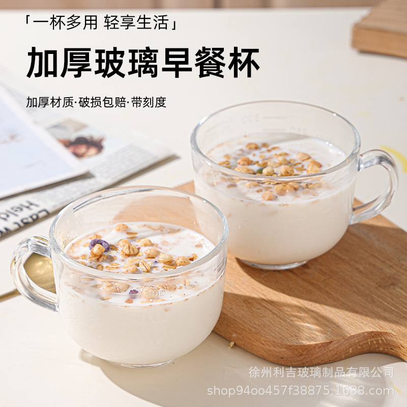 玻璃水杯子牛奶早餐刻度杯带把带盖勺大肚杯燕麦片杯