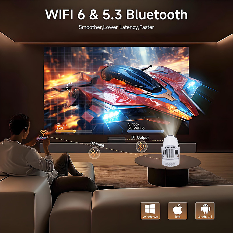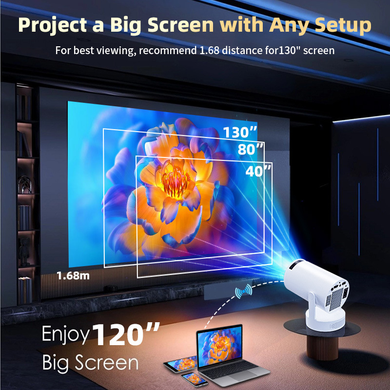 跨境hy300 PRO+投影仪便携迷你户外家用高清炮筒智能投影仪批发
