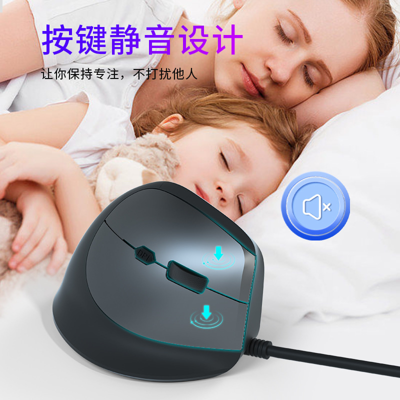 自产新款颜值实用多色有线鼠标,静音USB垂直鼠标 办公超省心!