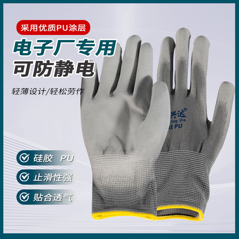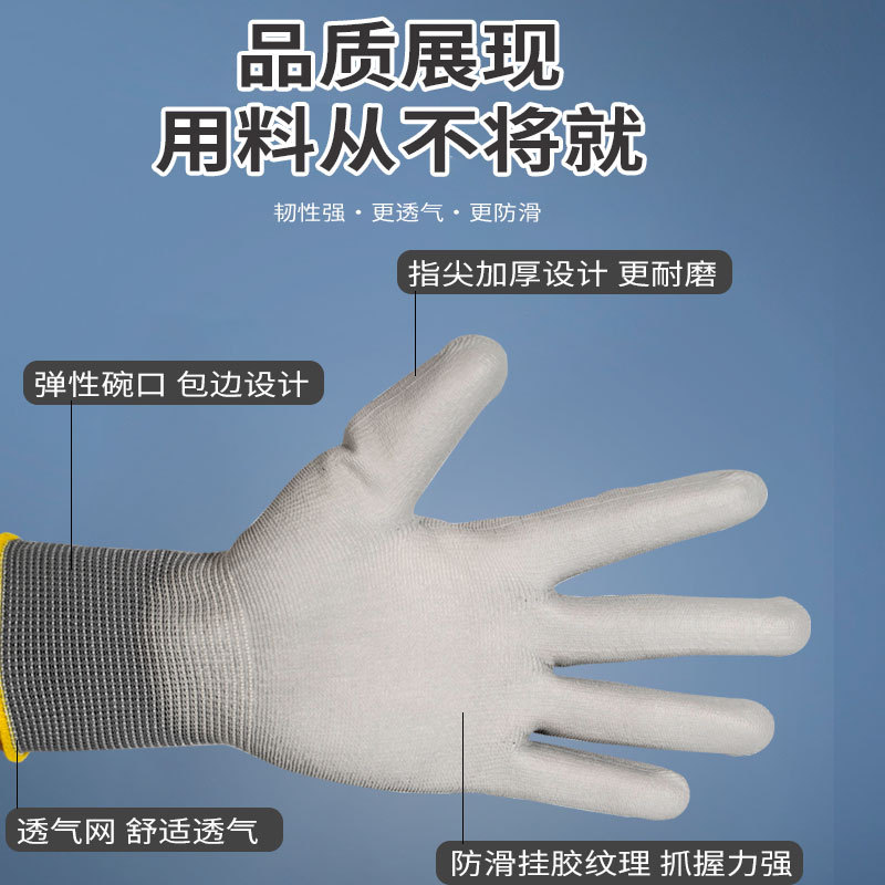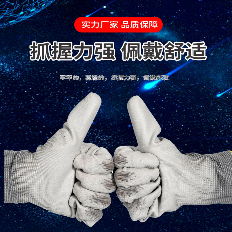PU涂指涂掌劳保手套白色尼龙防静电手套薄款防滑耐磨劳保手套