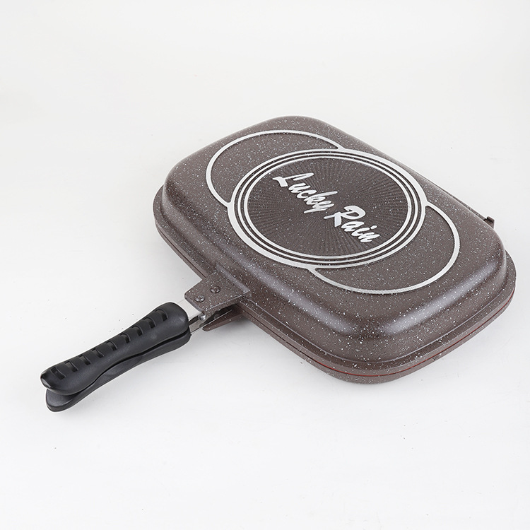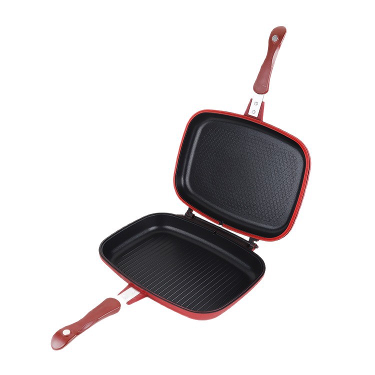 跨境批发36CM双面烤盘不粘煎烤锅压铸铝平底锅双面锅实用烹饪厨具