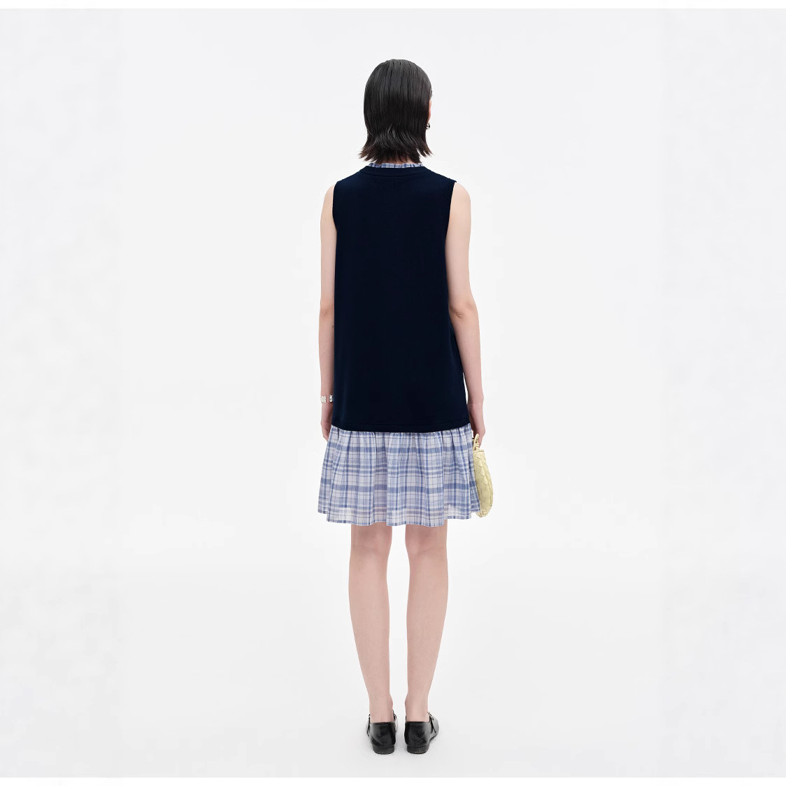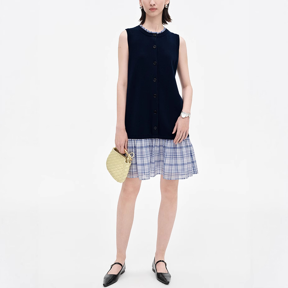 [马君妍同款]天丝桑蚕丝撞色拼接连衣裙女2025秋新款裙子