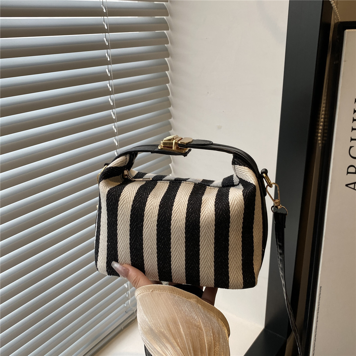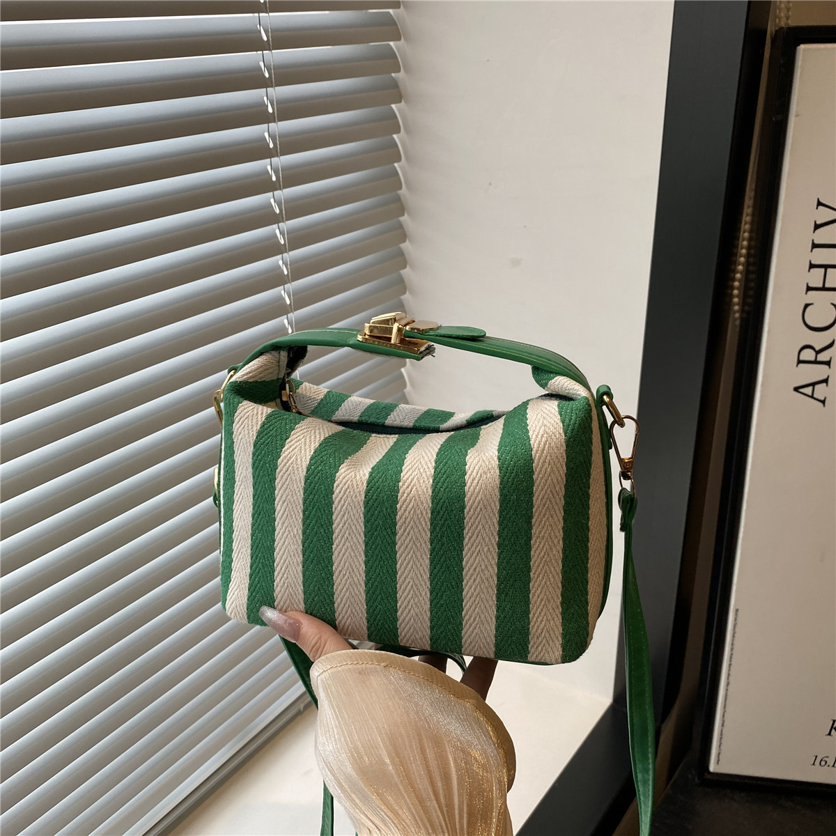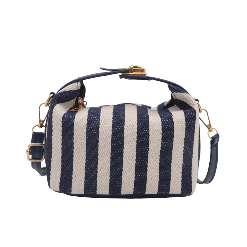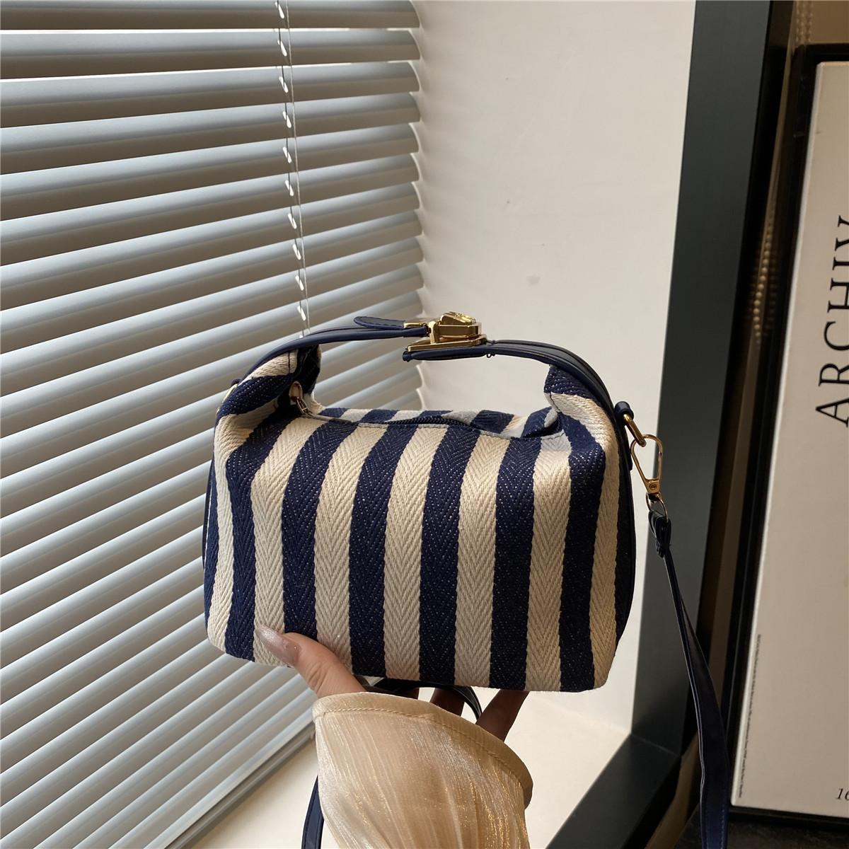 韩版复古文艺斜挎包简约小清新条纹单肩包休闲时尚大容量饺子包
