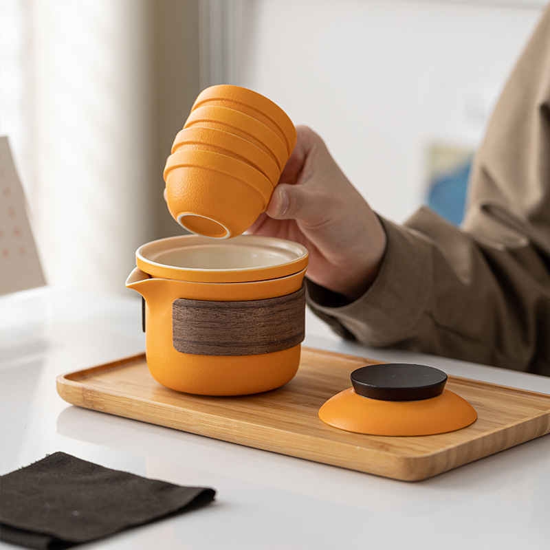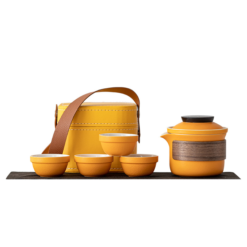 便携式户外旅行茶具小套装陶瓷快客杯一壶四杯简约露营泡茶壶茶杯