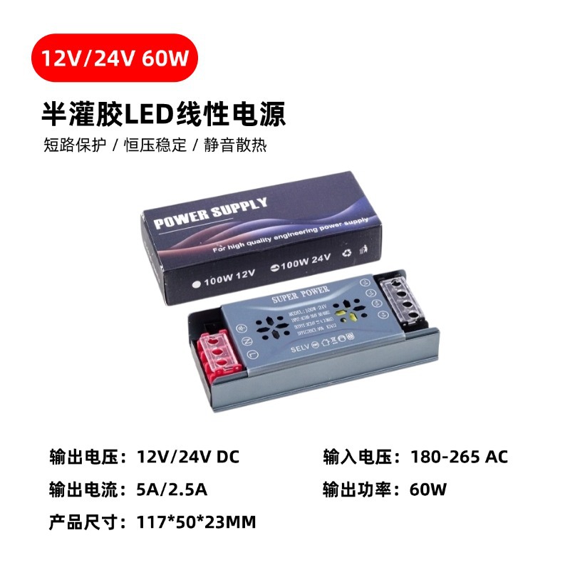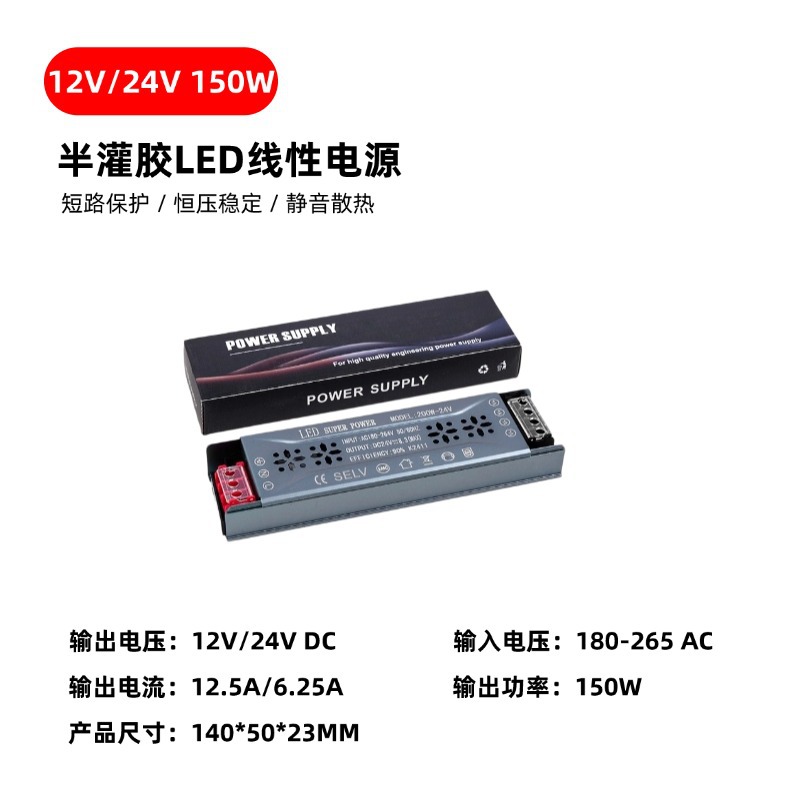 24V变压器LED灯带低压开关电源LED开关电源12V半灌胶静音超薄
