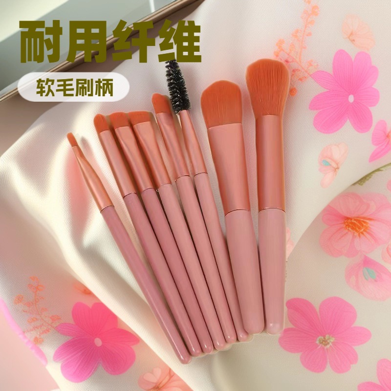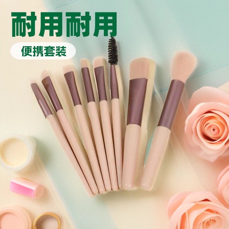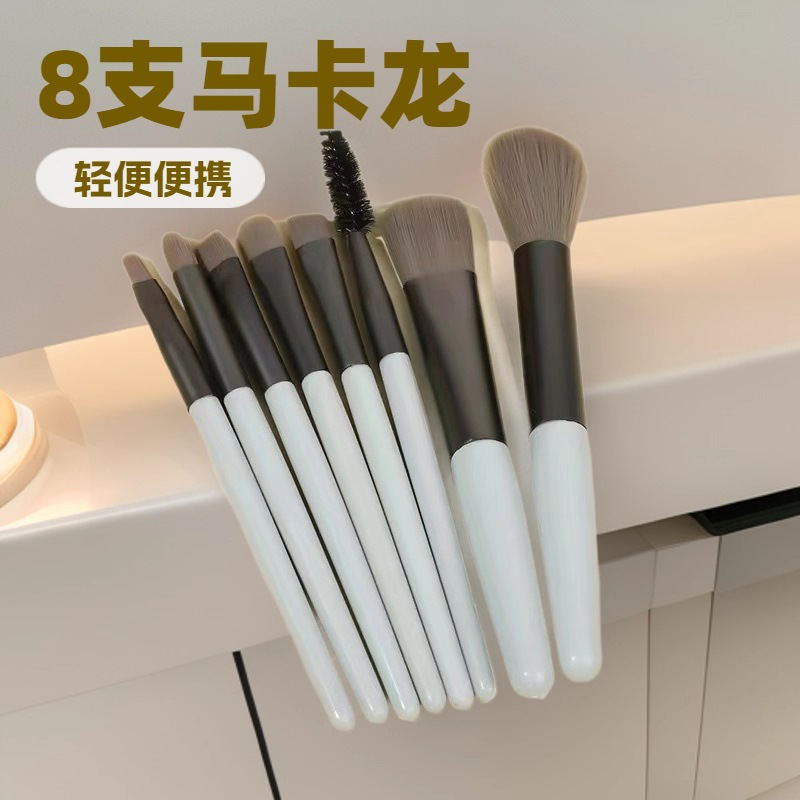 迷你8支化妆刷套装马卡龙小8支装便携款人造纤维美妆工具加包套