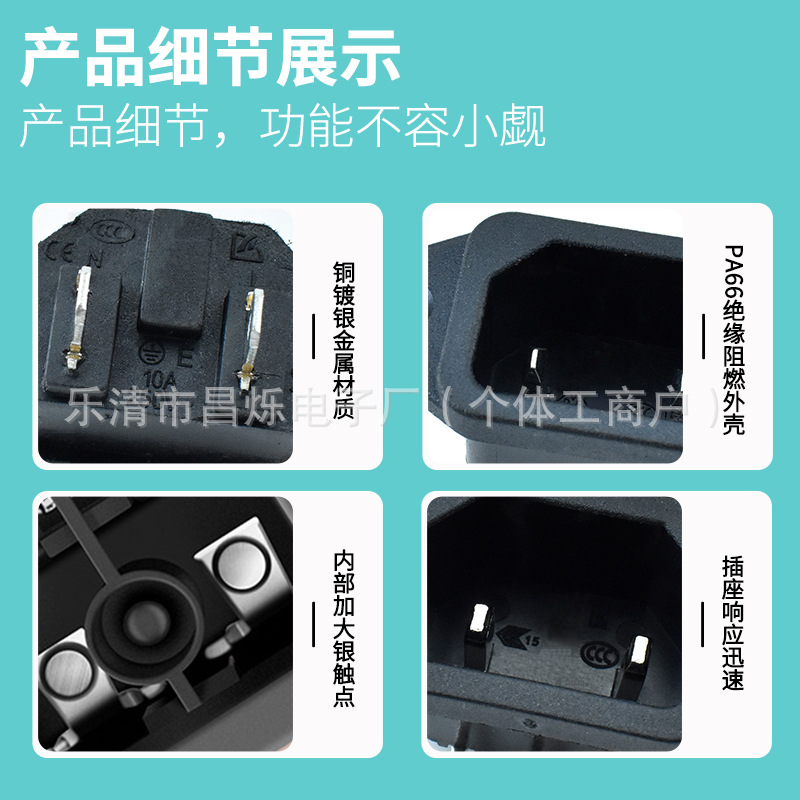CCC认证二类两针插座 AC04品字AC电源插座 DB-14-06 铜脚