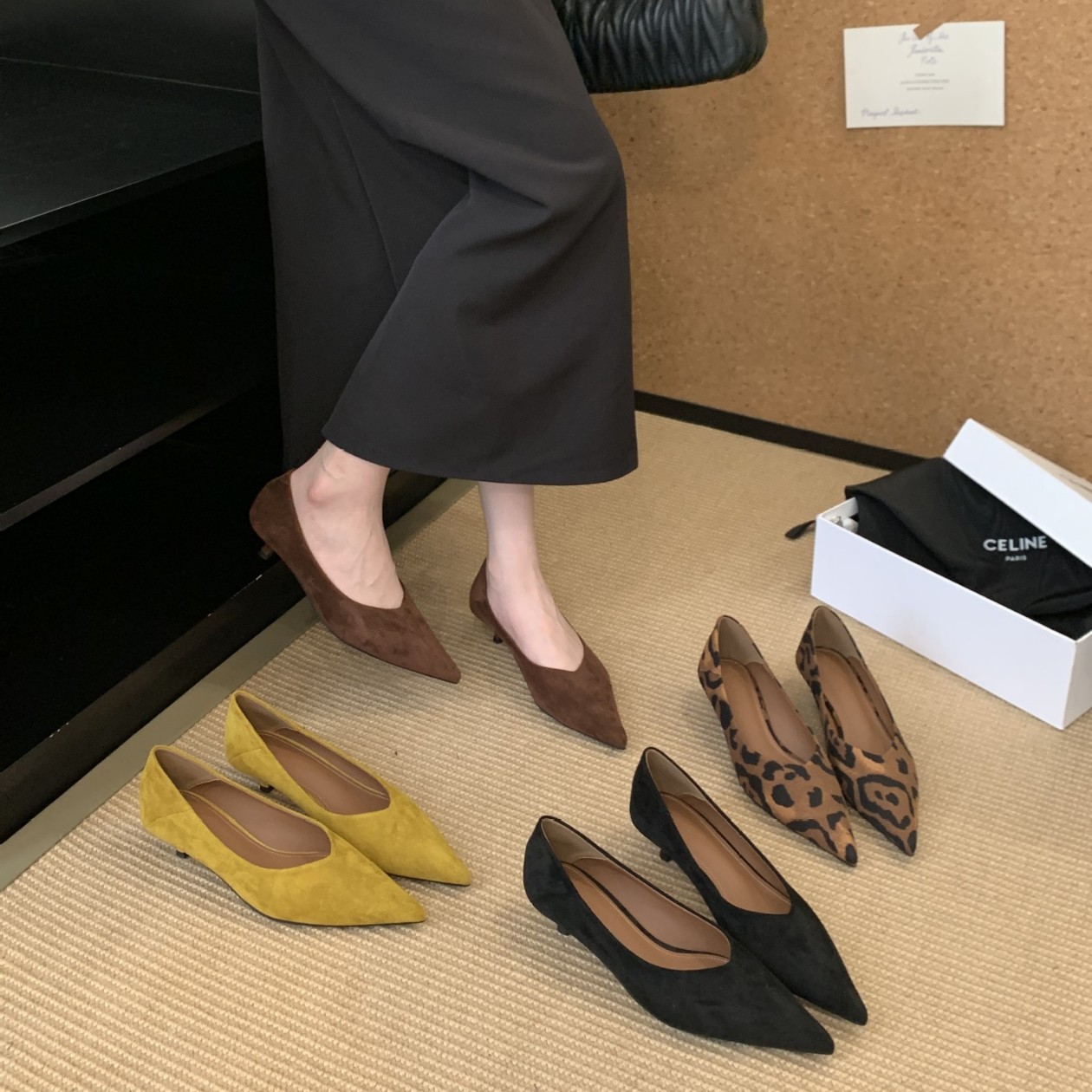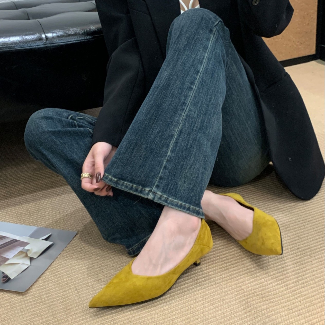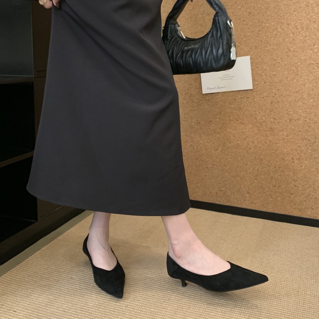 法式尖头高跟鞋2025新款秋冬季绒面深口气质工作鞋时尚百搭女单鞋