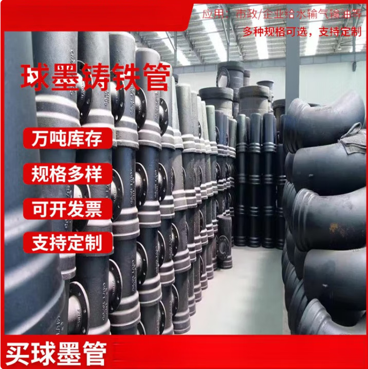 球墨铸铁管配件盘承插盘甲乙短管弯头 三通 四通变径铸铁管件黑色