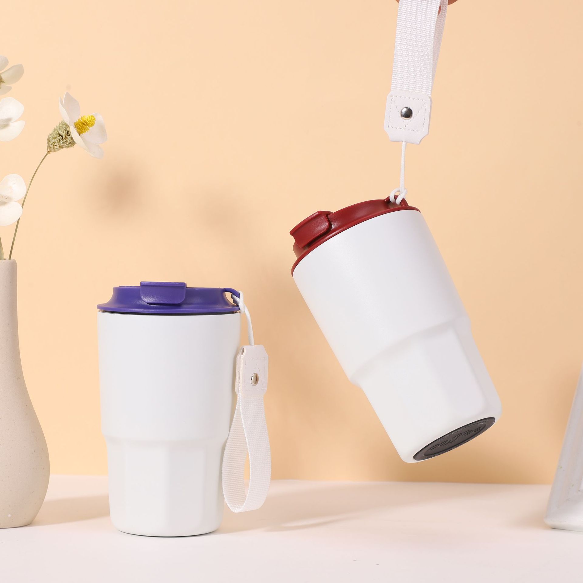 网红316不锈钢真空九角咖啡杯保温杯户外便携带提绳轻奢简约礼品