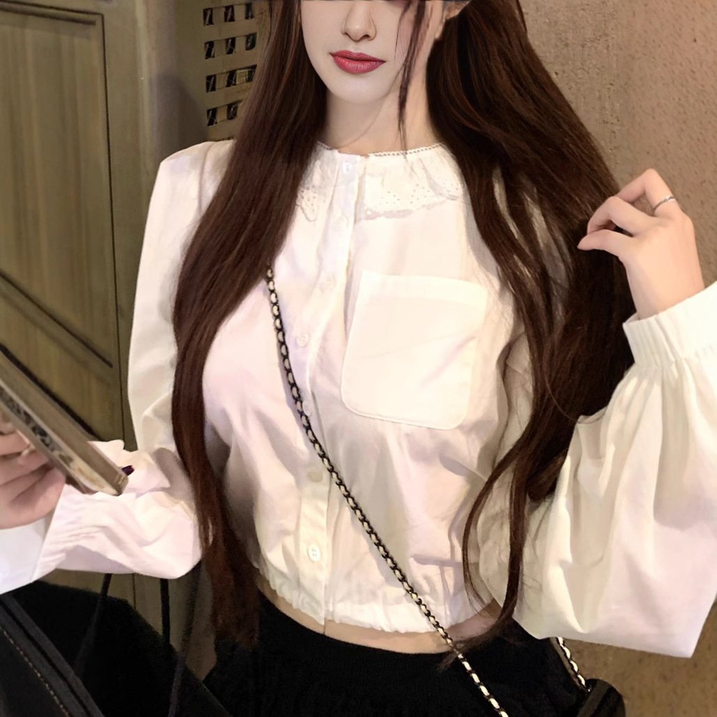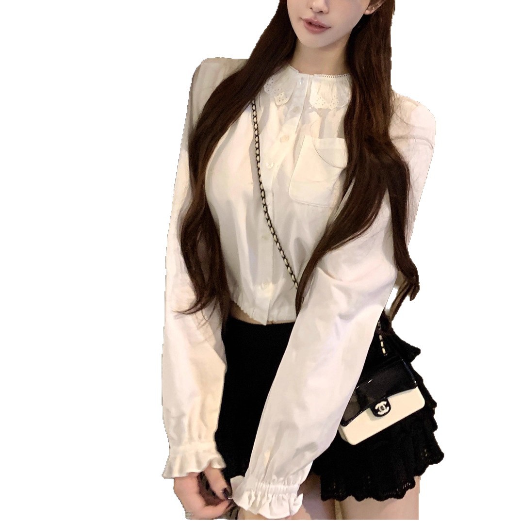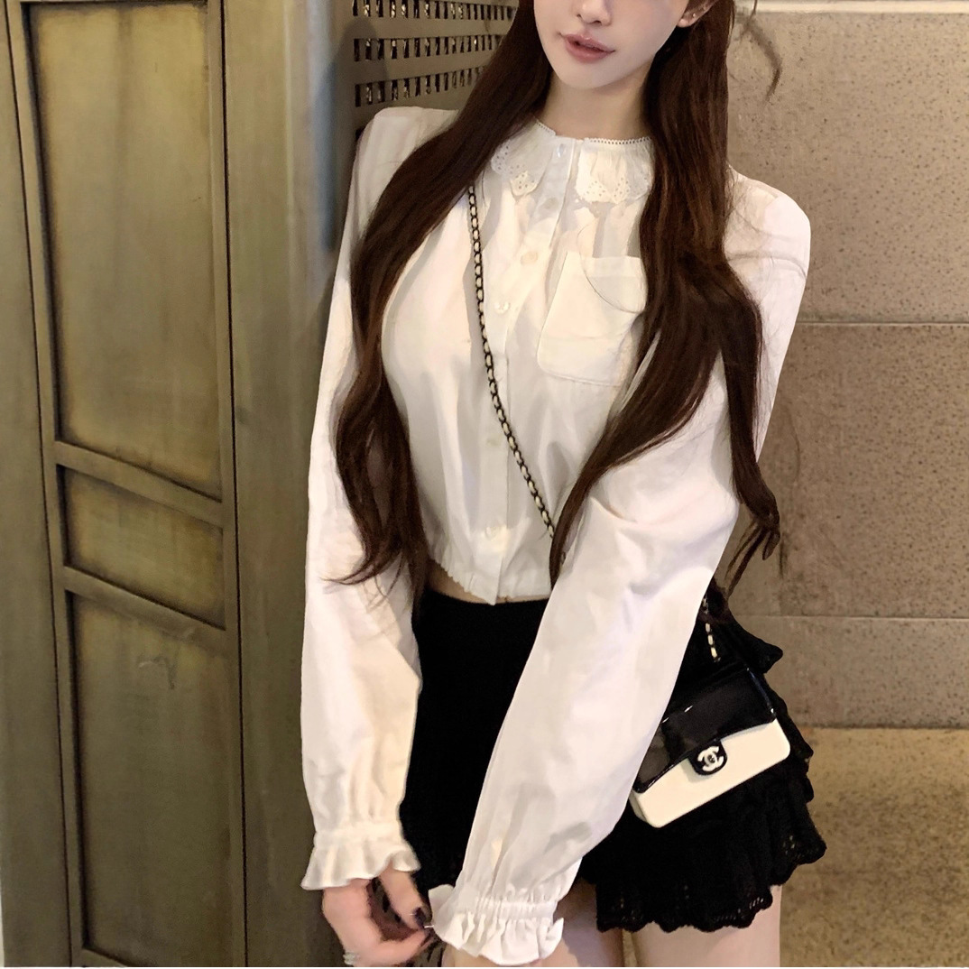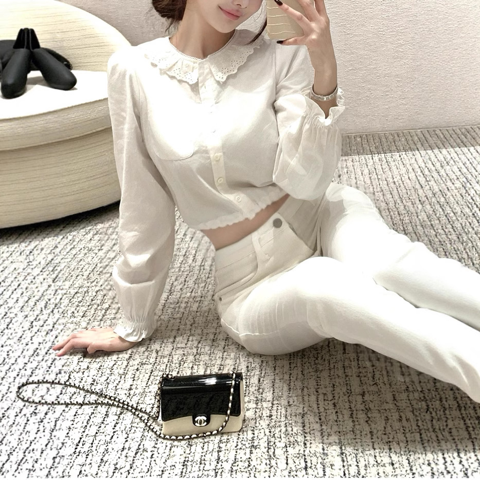 韩雨嘉Kyoto贵女棉白色衬衫 三层荷叶边针织半裙套装