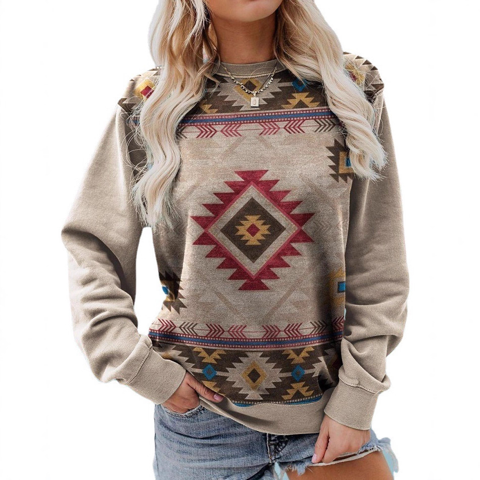 跨境货源秋冬新款亚马逊wish 欧美 长袖圆领西部风格卫衣6911