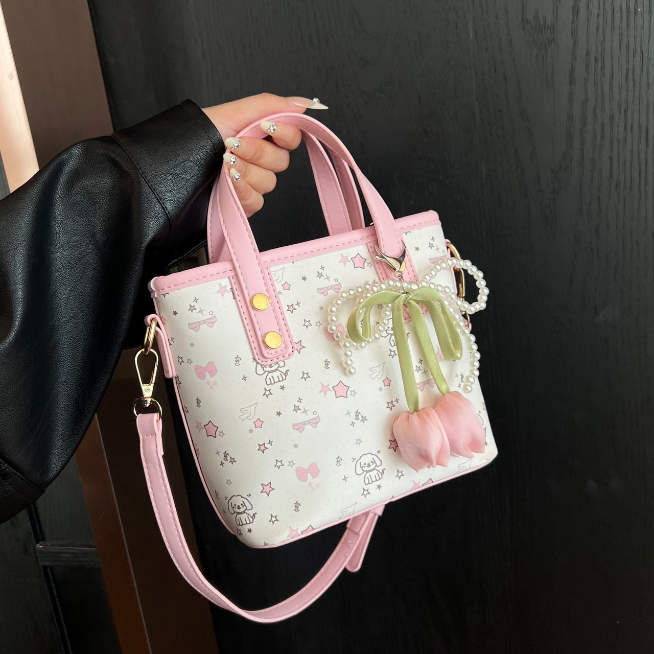 甜美手提包时尚百搭简约休闲单肩斜挎包便收纳可爱卡通简约水桶包