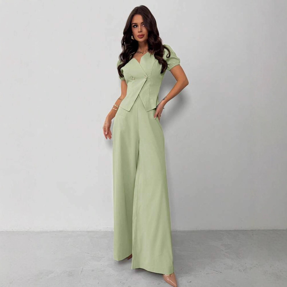 欧美外贸独立站新款节日办公室通勤女装不对称衬衫阔腿裤两件套装