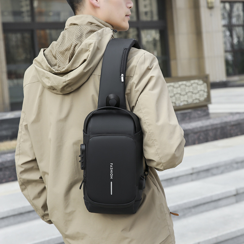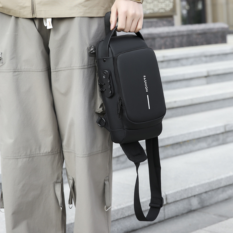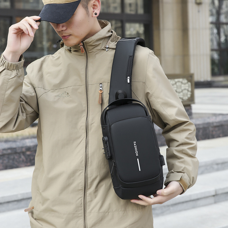 男士胸包机车休闲运动单肩斜挎包休闲夏季胸前包防盗密码锁手提包