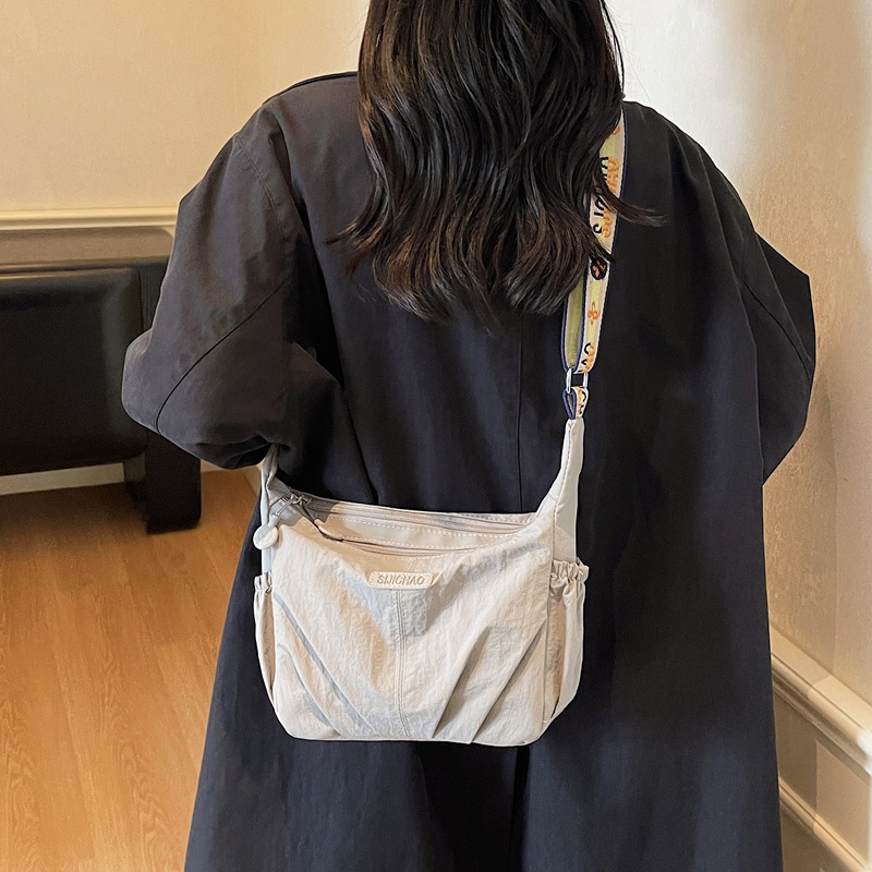 纯色包包轻便透气简约百搭单肩斜挎包慵懒风多隔层大容量饺子包