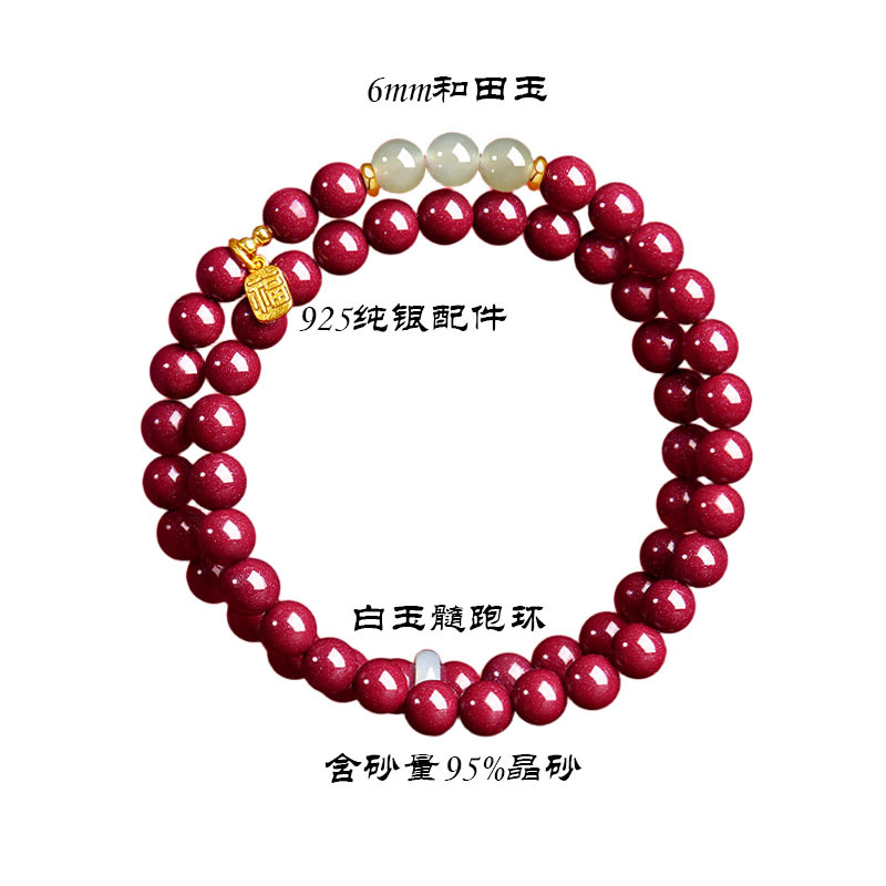 | 颜色 | 【冰飘花南红】高含量紫金砂-6mm单圈【心想事成】 | 颜色 | 【纯白和田玉】高含量紫金砂-6mm单圈【情绪稳定】 |