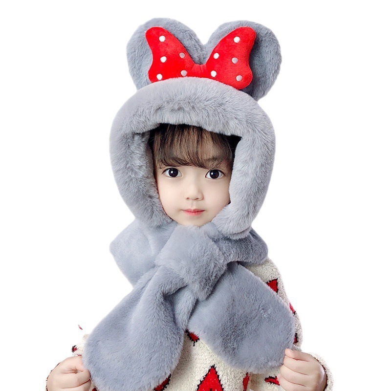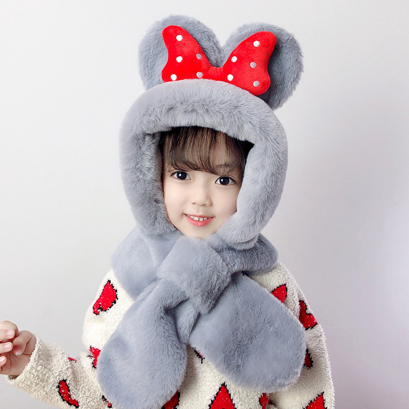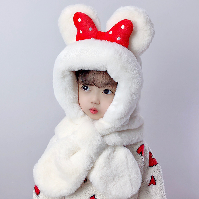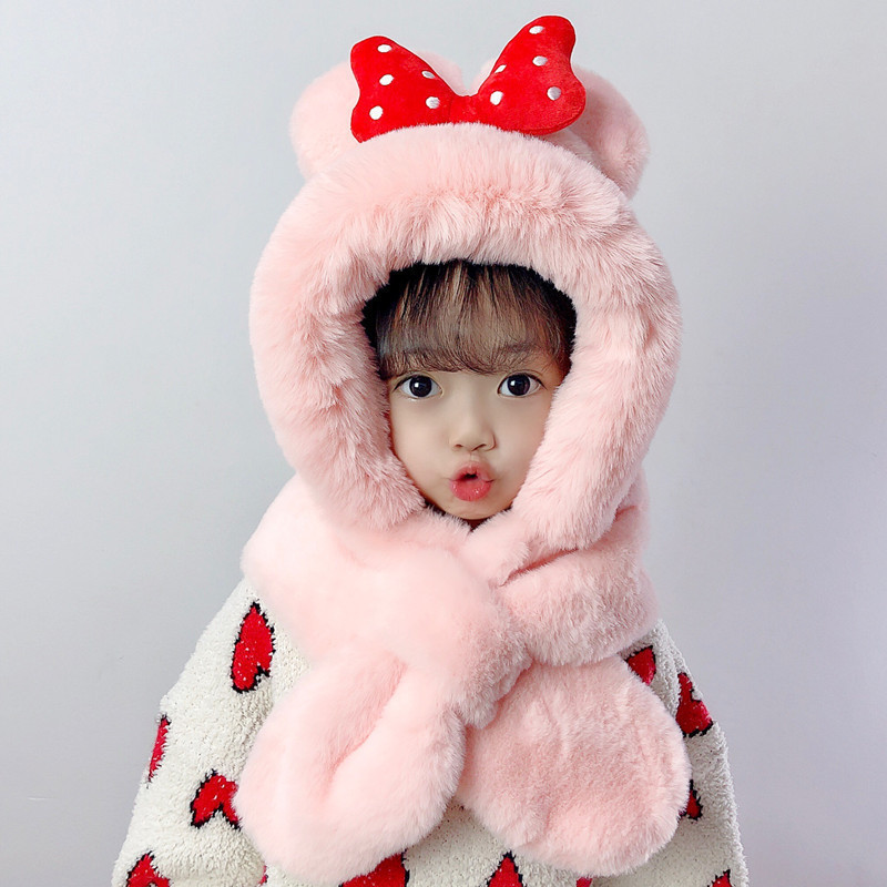 冬季儿童帽子围巾口罩一体毛绒帽可爱熊防风防寒护耳可拆卸三件套
