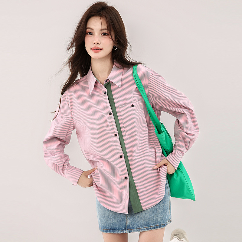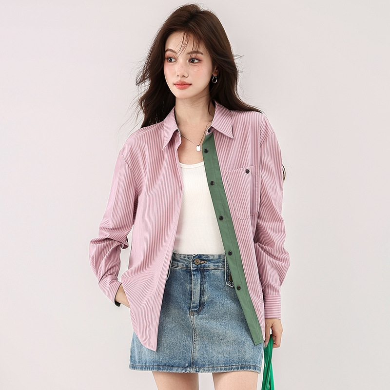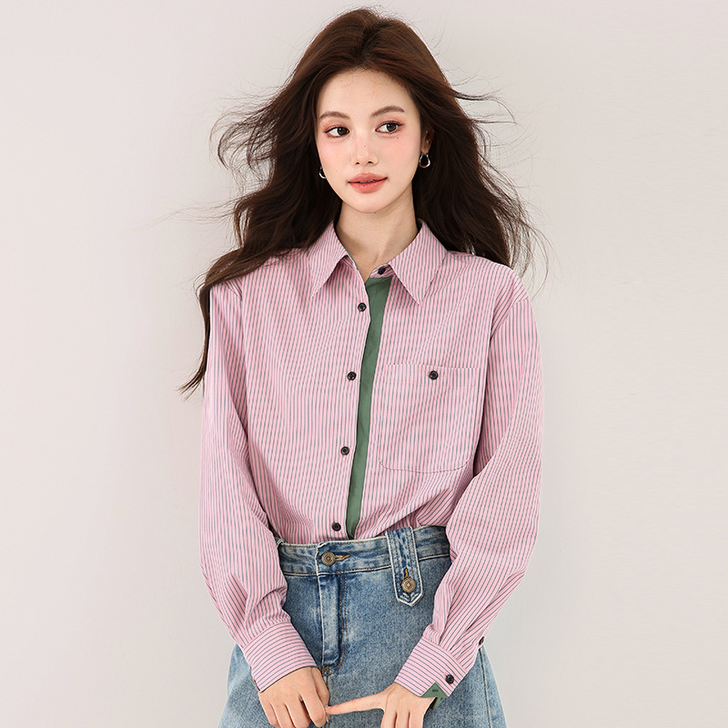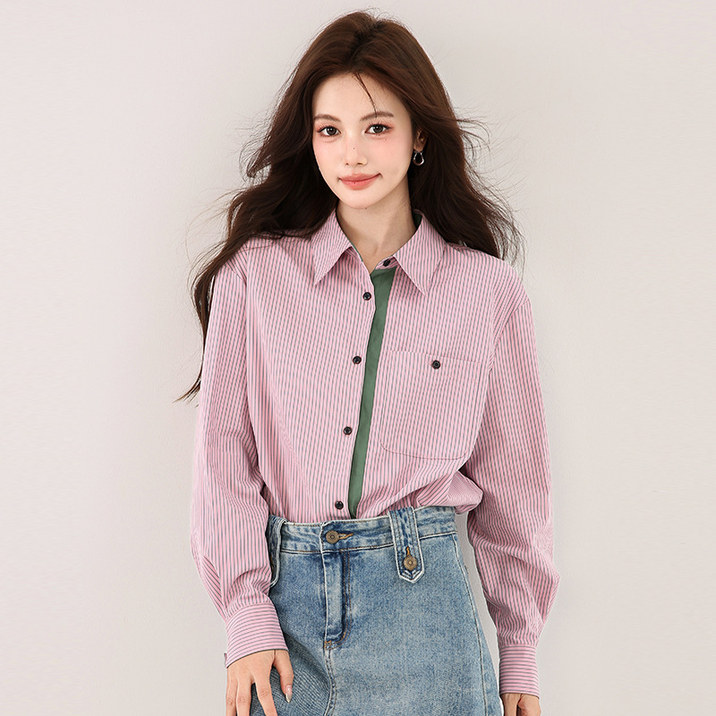 solighter 法式复古撞色竖条纹衬衫女秋冬2025新款磨毛长袖上衣