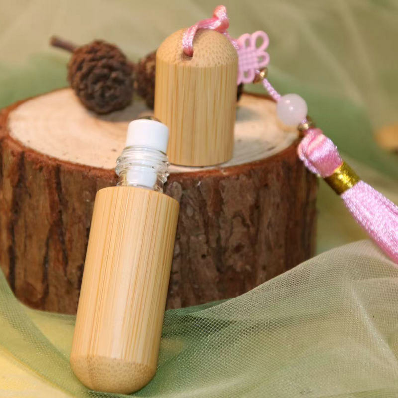 竹木圆头滚珠瓶精油开窗全包款滚珠瓶精华液生发液香水分装瓶防摔