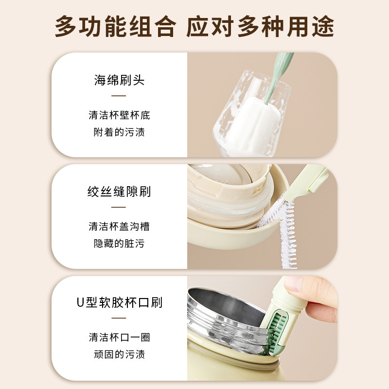 新款三合一洗杯子神器家用多功能杯刷水杯保温杯刷奶瓶清洁海绵刷
