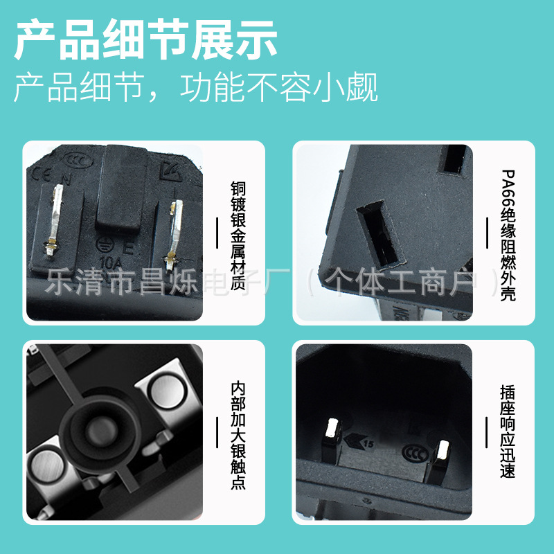 AC05二类品字两针细脚DB-14卡式 铜脚250v10ACCC认证AC插座