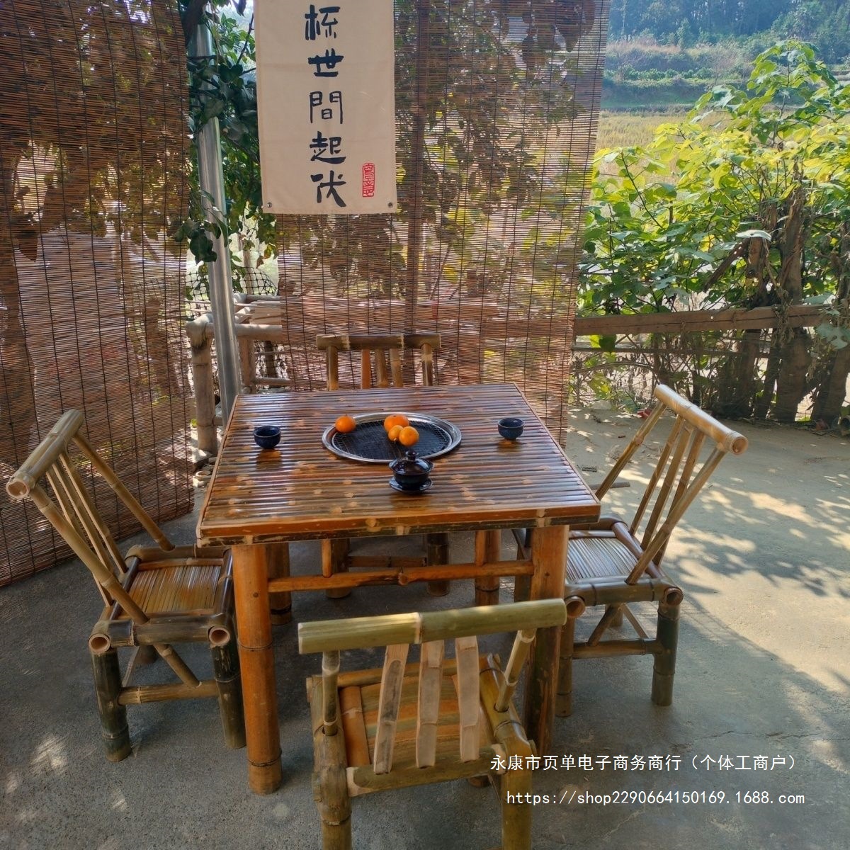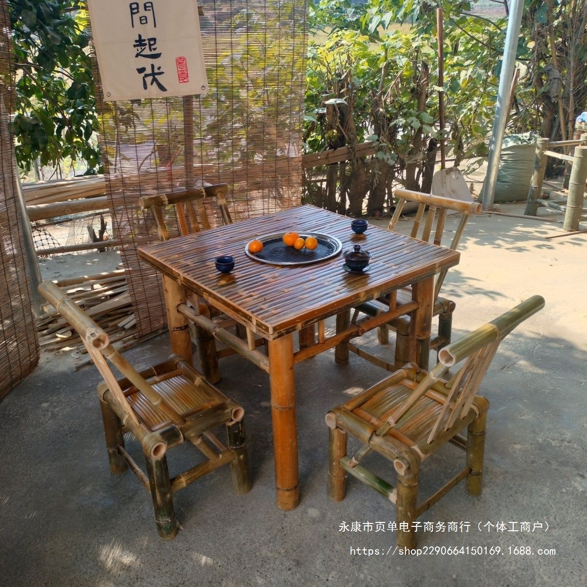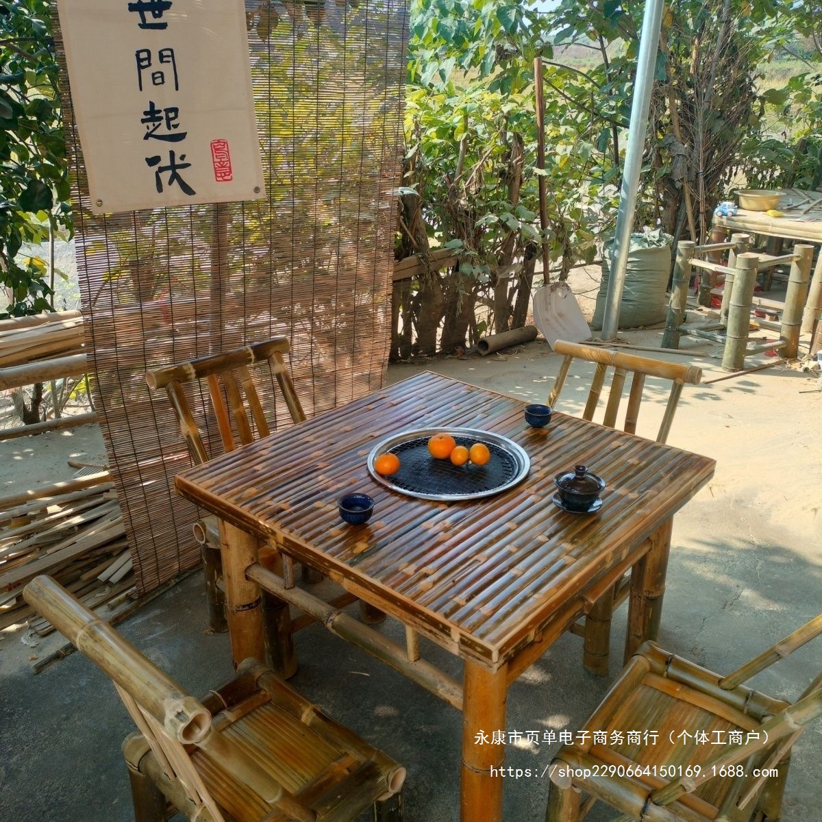 围炉煮茶竹桌椅子户外桌子庭院家用餐桌茶几桌复古火锅竹桌椅清仓