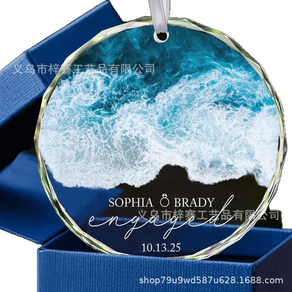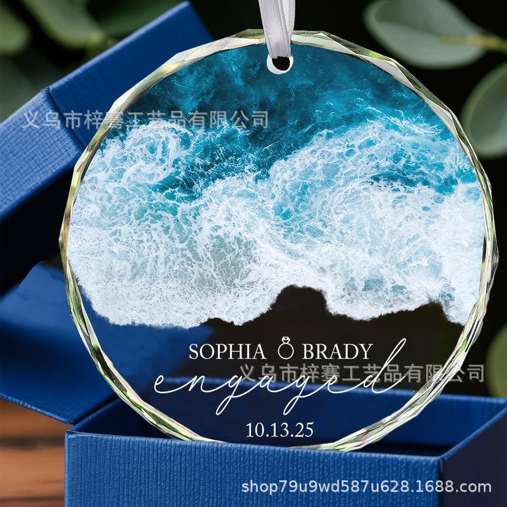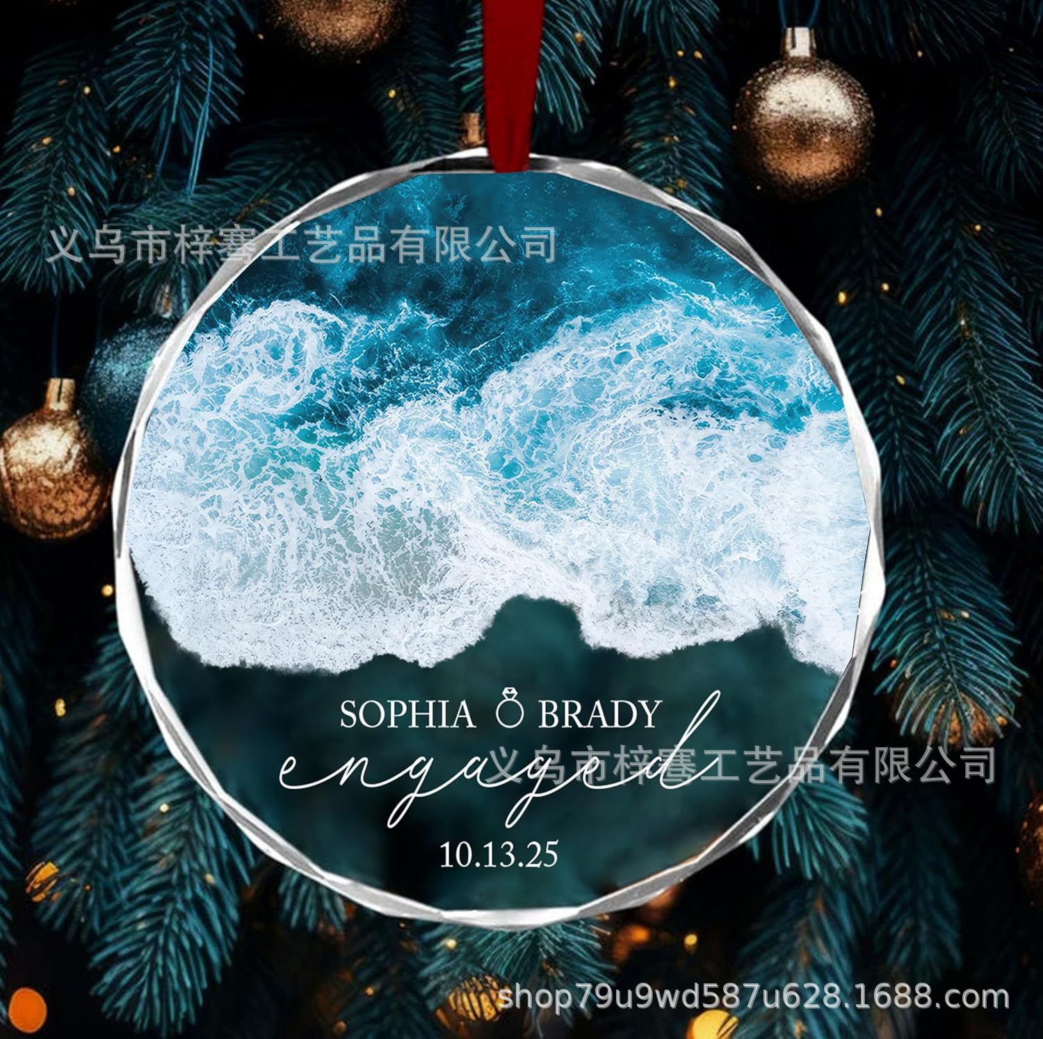 亚马逊跨境圣诞节圆形玻璃挂件情侣新婚送朋友亲人同事圣诞装饰品