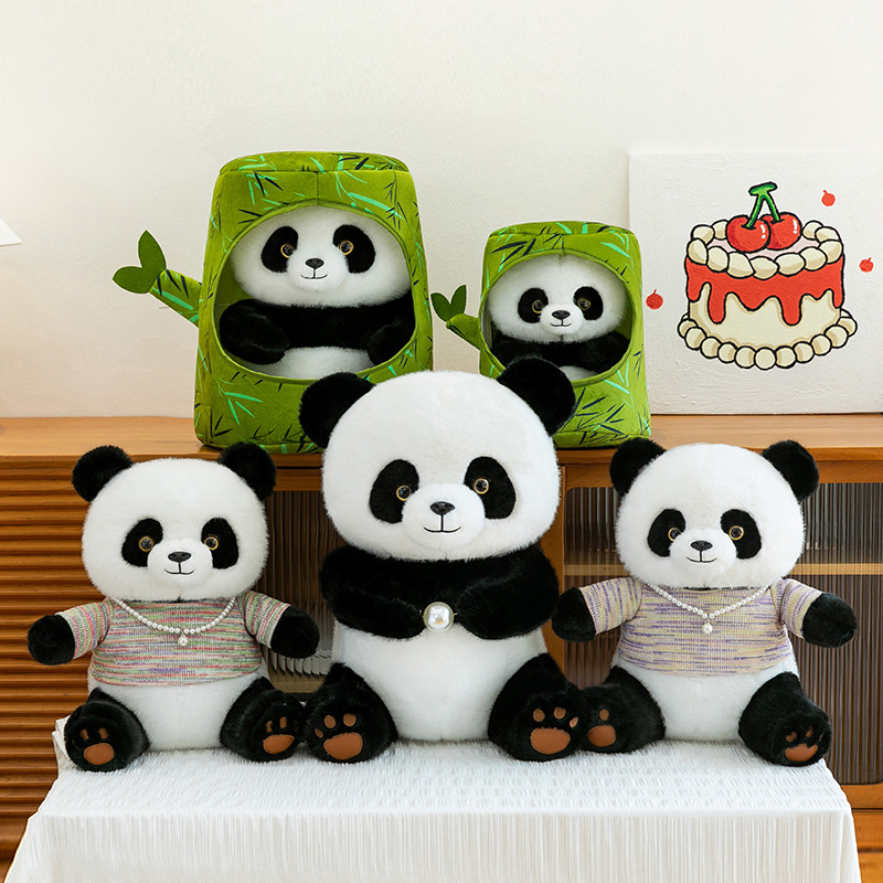 可爱熊猫公仔毛绒玩具富贵国宝熊猫穿衣布娃娃小熊猫室内玩偶批发