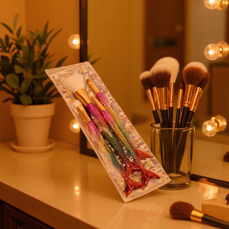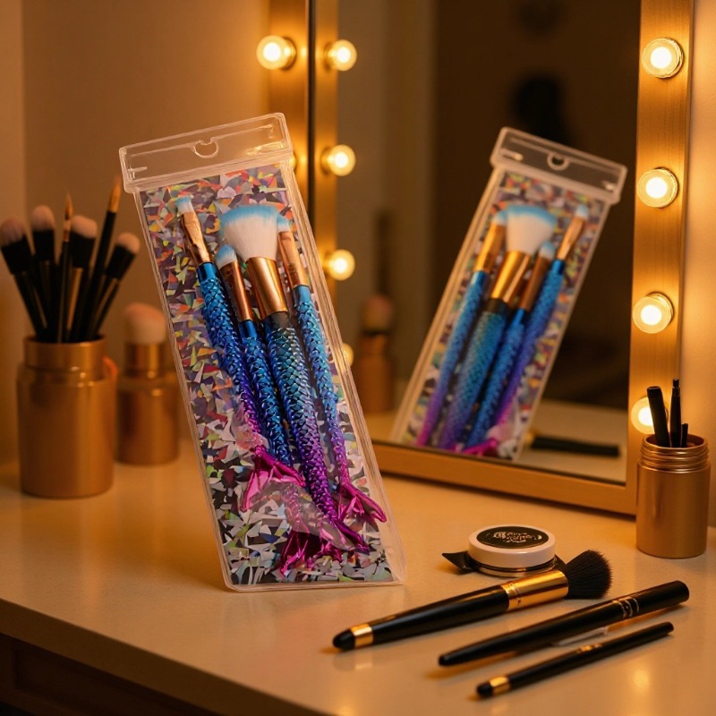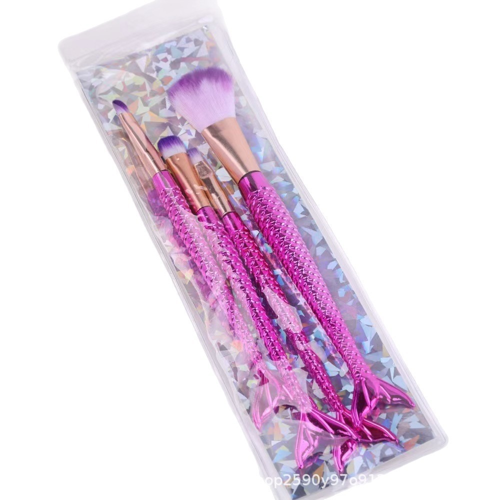 四支美人鱼尾跨境热卖爆款化妆刷电镀版散粉刷眼影刷眉刷全套刷子