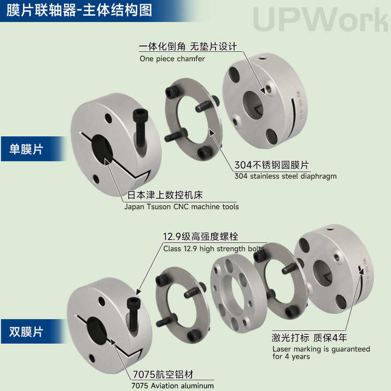 臻工 单双膜片式联轴器铝合金大扭矩 联轴节连轴器伺服马达丝杆杠