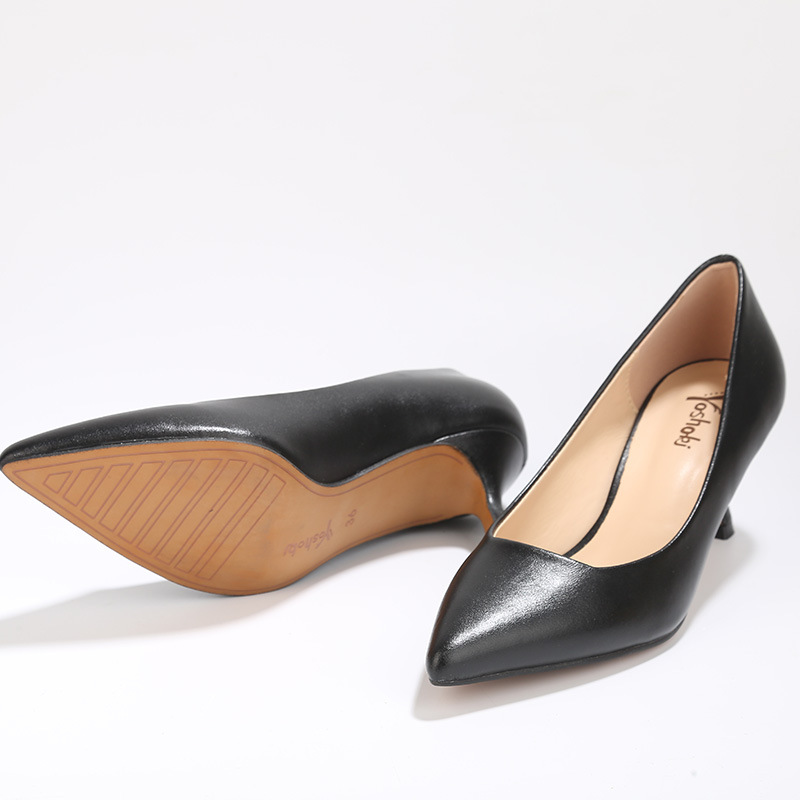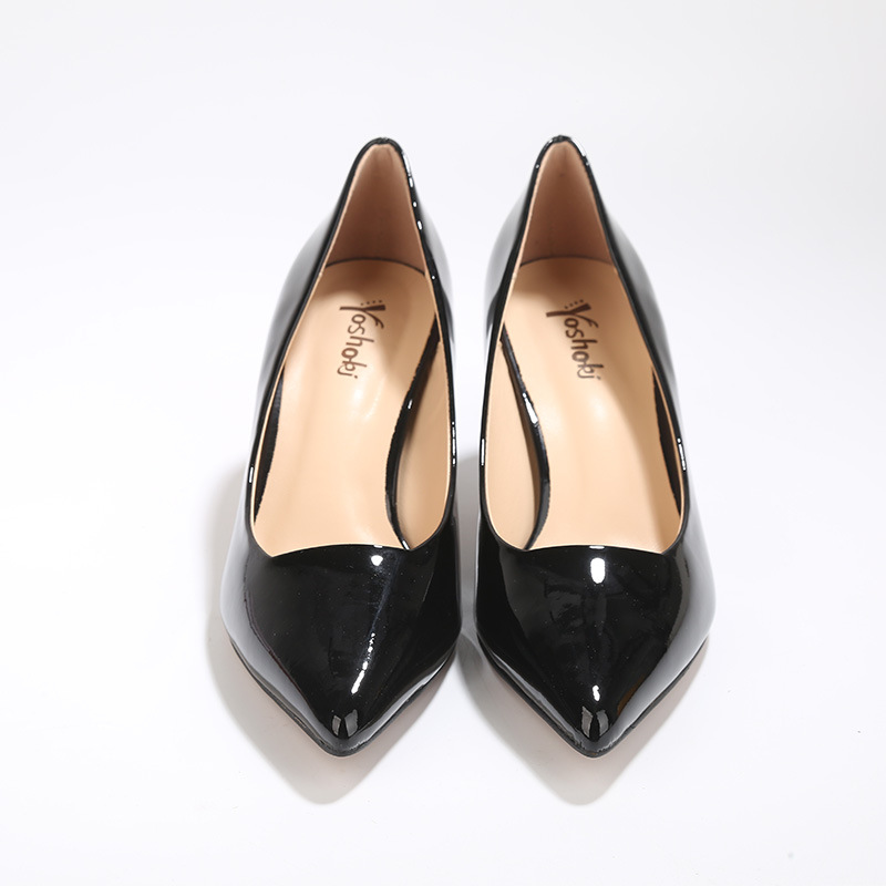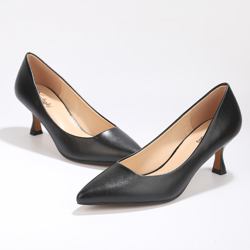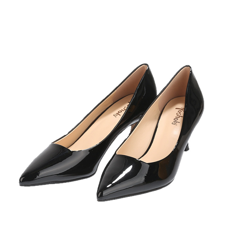 羊皮内垫低跟尖头单鞋女油皮纹纯色软皮时装女鞋春夏新款高跟鞋