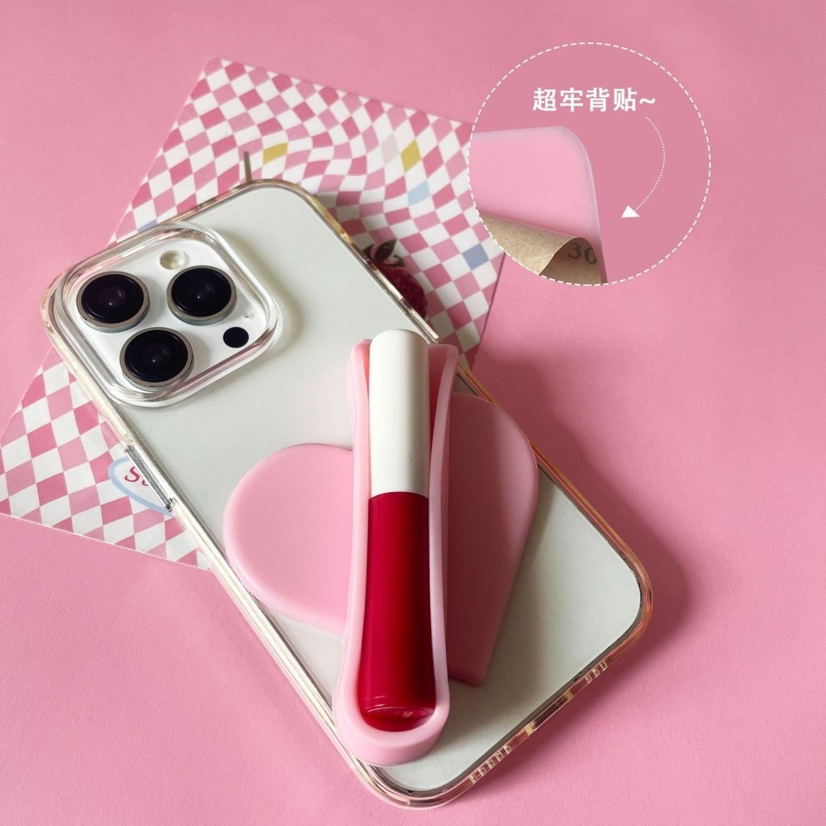 热销硅胶爱心口红支架通用唇釉唇膏手机背贴3m粘贴式支架