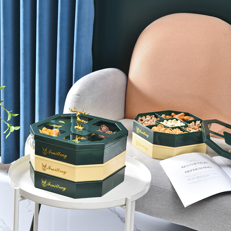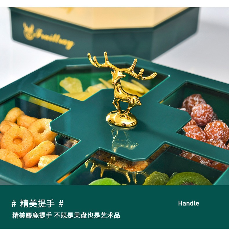 八角麋鹿干果收纳盒 客厅坚果盘糖果盒 轻奢带盖家用零食盘干果盘