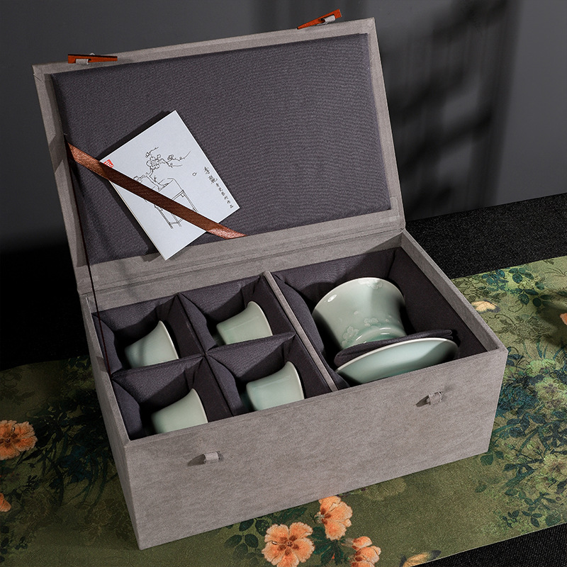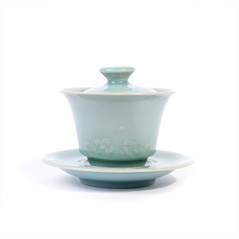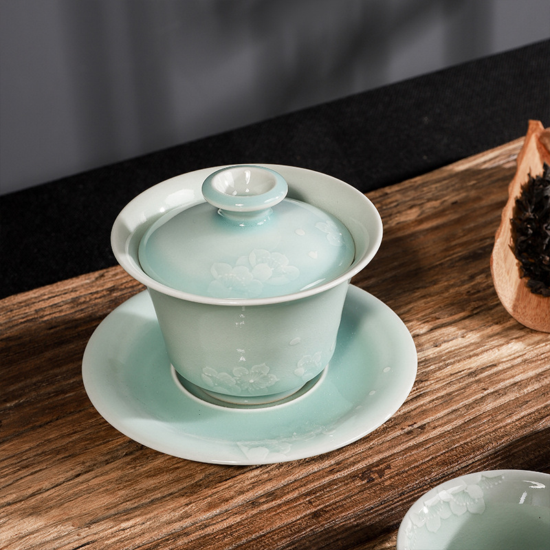 青瓷功夫茶具套装陶瓷盖碗泡茶壶茶杯洗茶道干泡盘整套轻奢复古