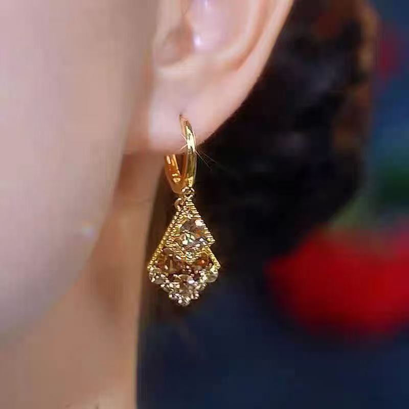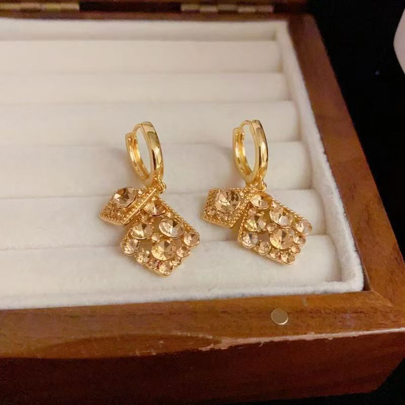 高级感咖色满钻双层菱形耳扣精致个性百搭轻奢气质耳环女轻奢风