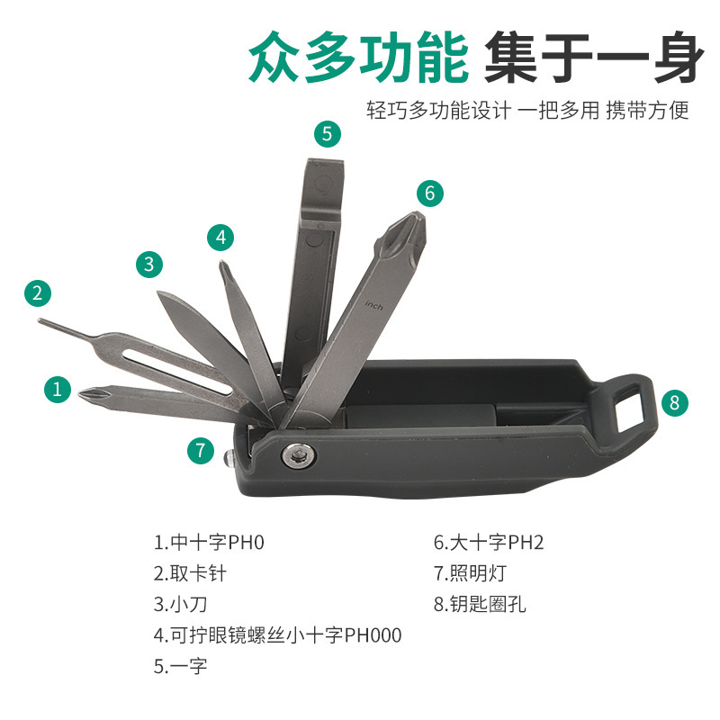 5合1多功能便捷式折叠工具不锈钢组合工具家用卡针螺丝工具卡