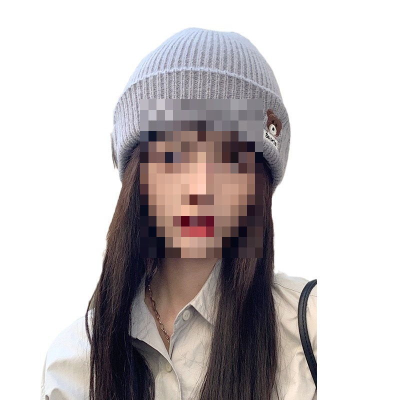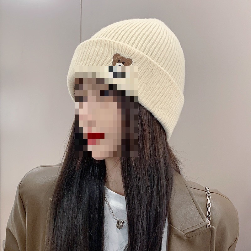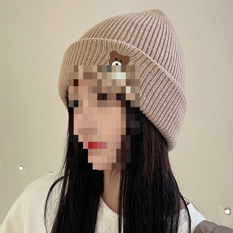 小熊帽子女秋冬可爱护耳毛线帽骑车百搭针织帽显脸小月子帽潮情侣