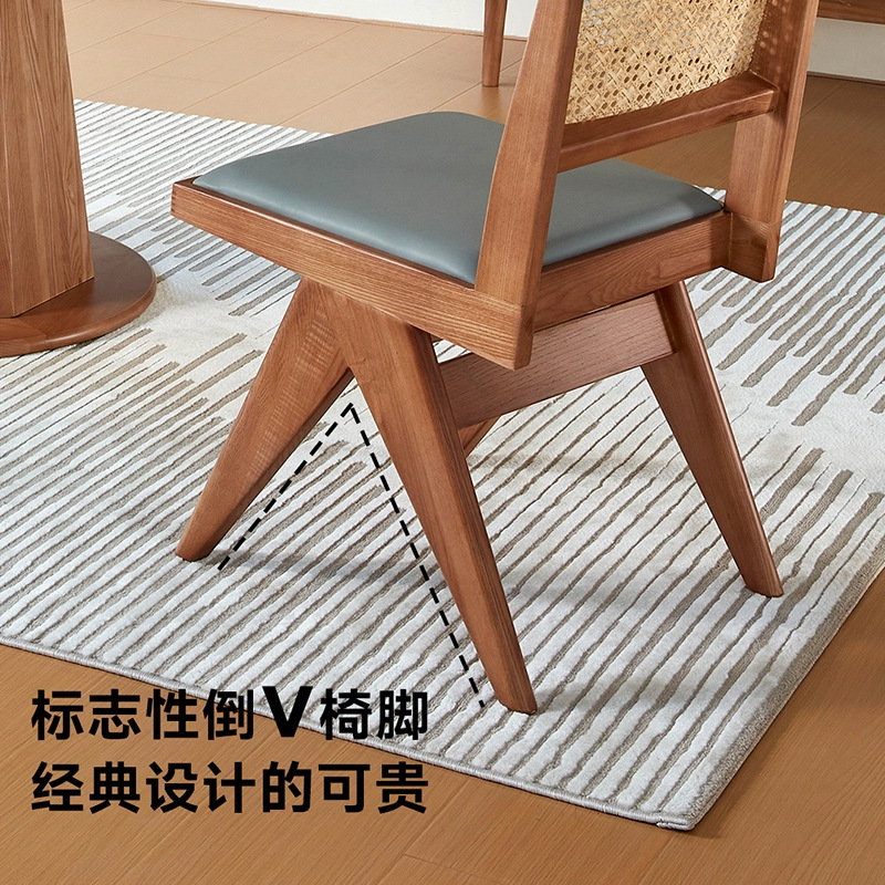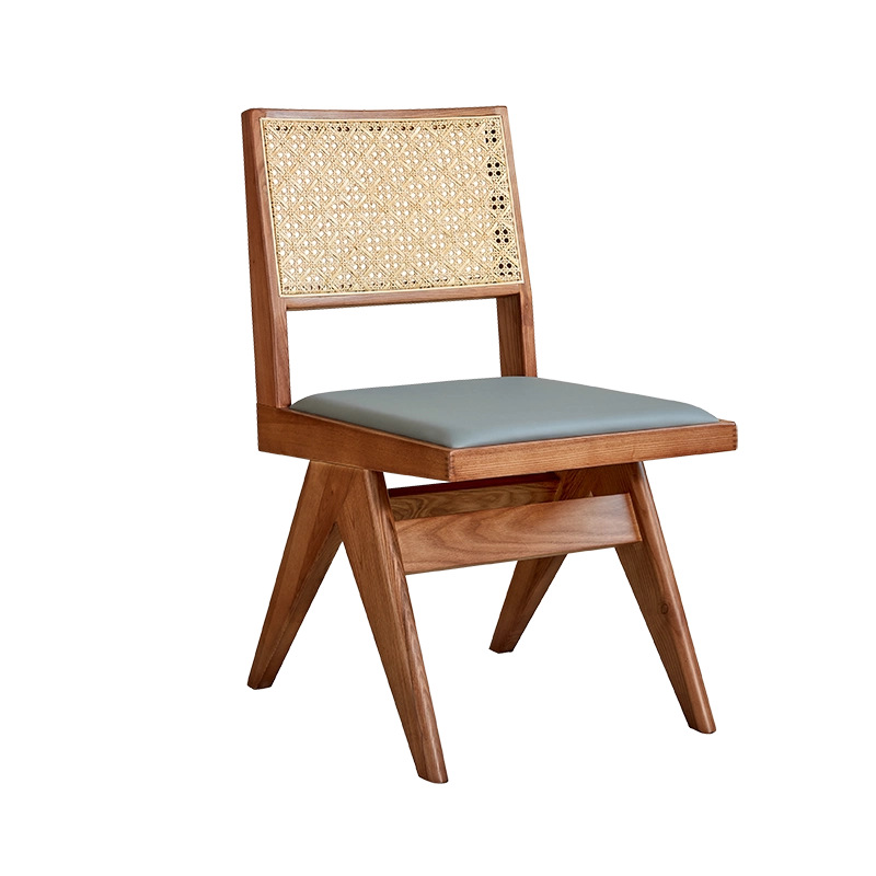 藤编实木餐椅家用高靠背椅软包餐椅整装无扶手侘寂风昌迪加尔椅