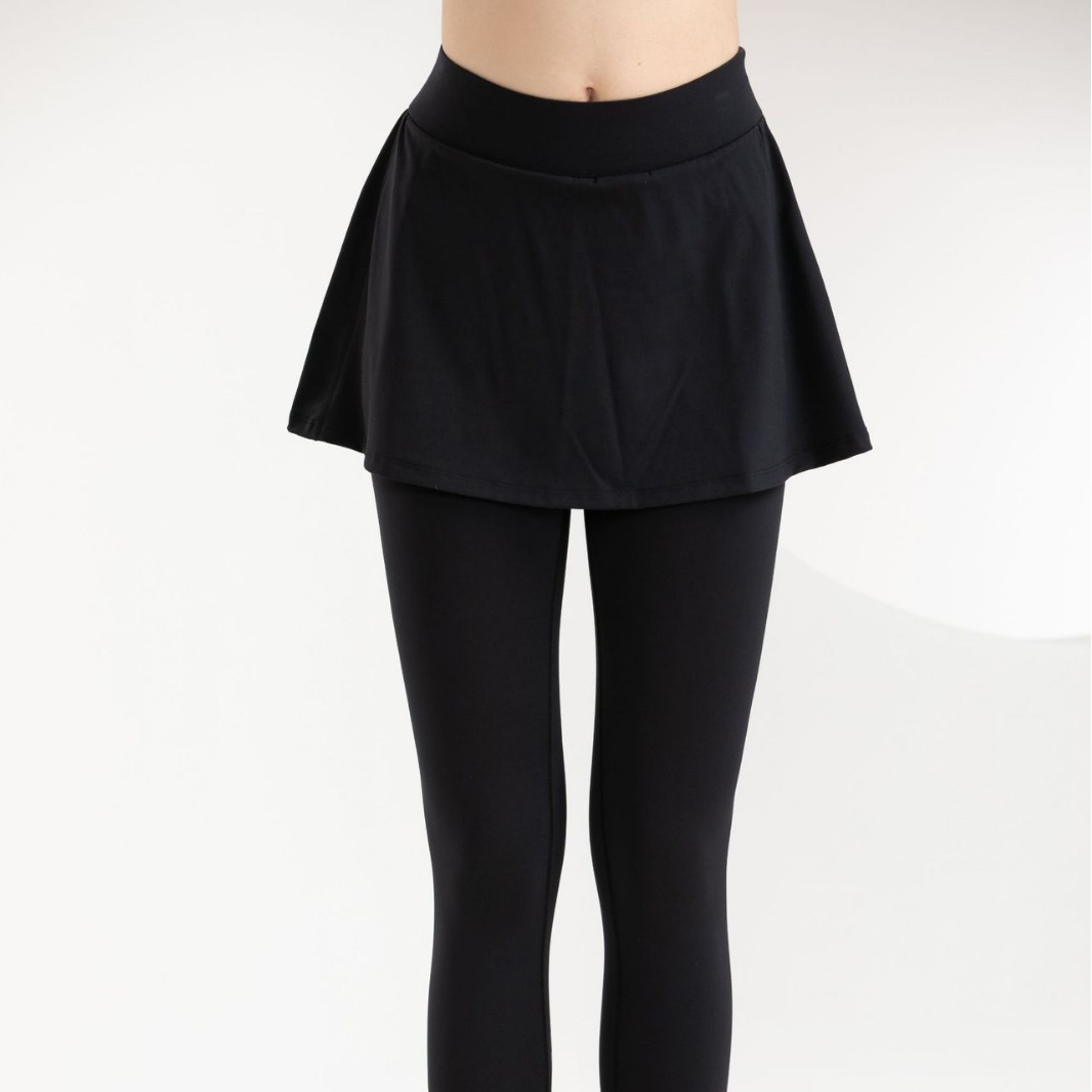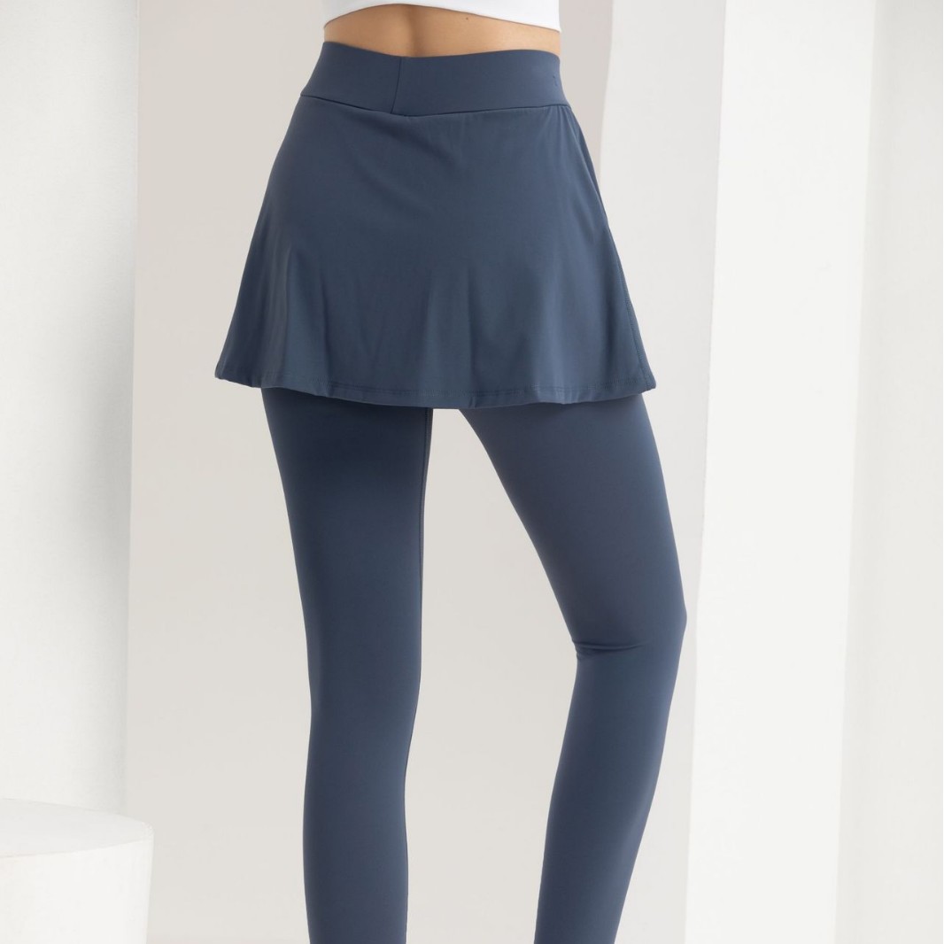 欧美假两件瑜伽裙裤高腰弹力跑步紧身运动裤外穿防走光瑜伽裤女